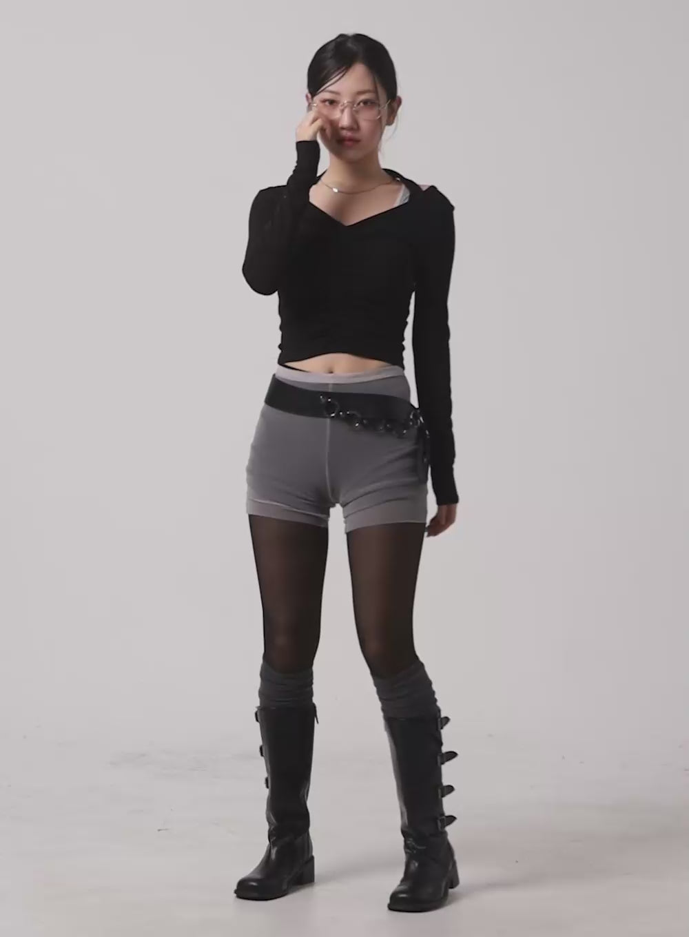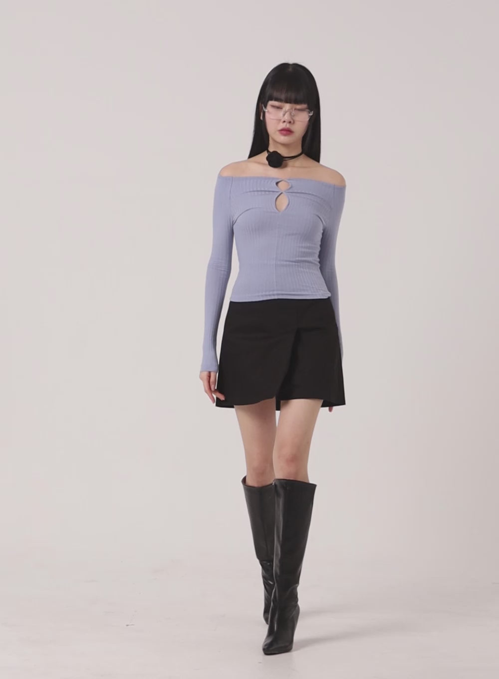 solid-knotted-wrap-mini-skort-cm412 / Dark gray