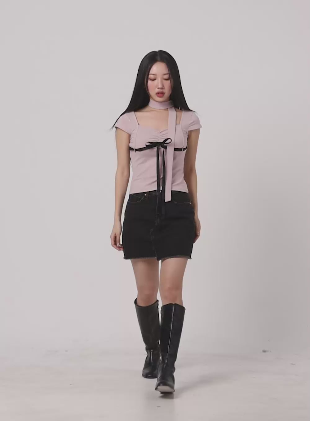 ribbon-tie-flare-mini-skirt-om427 / Black