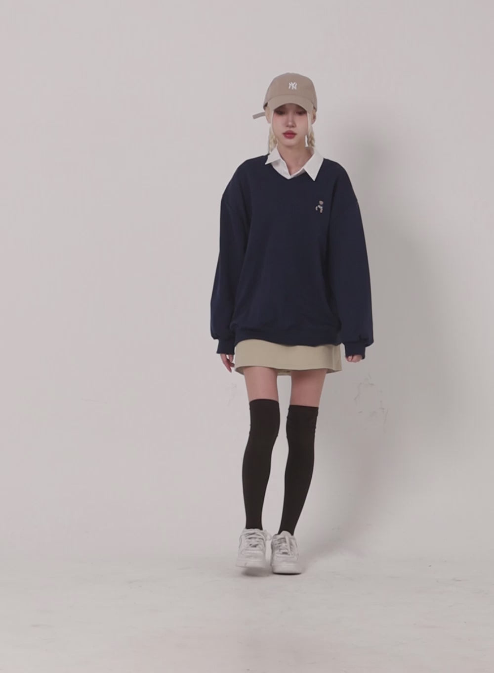 buttoned-v-neck-cardigan-of406 / Dark blue
