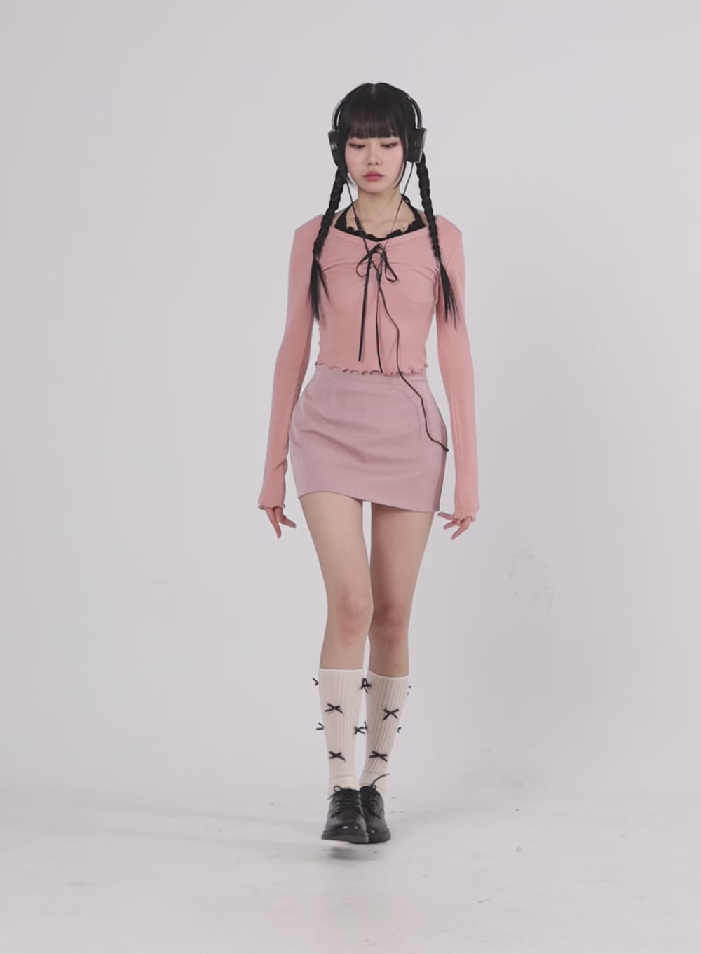 dyed-ribbon-tie-mini-skirt-cj424 / Dark gray
