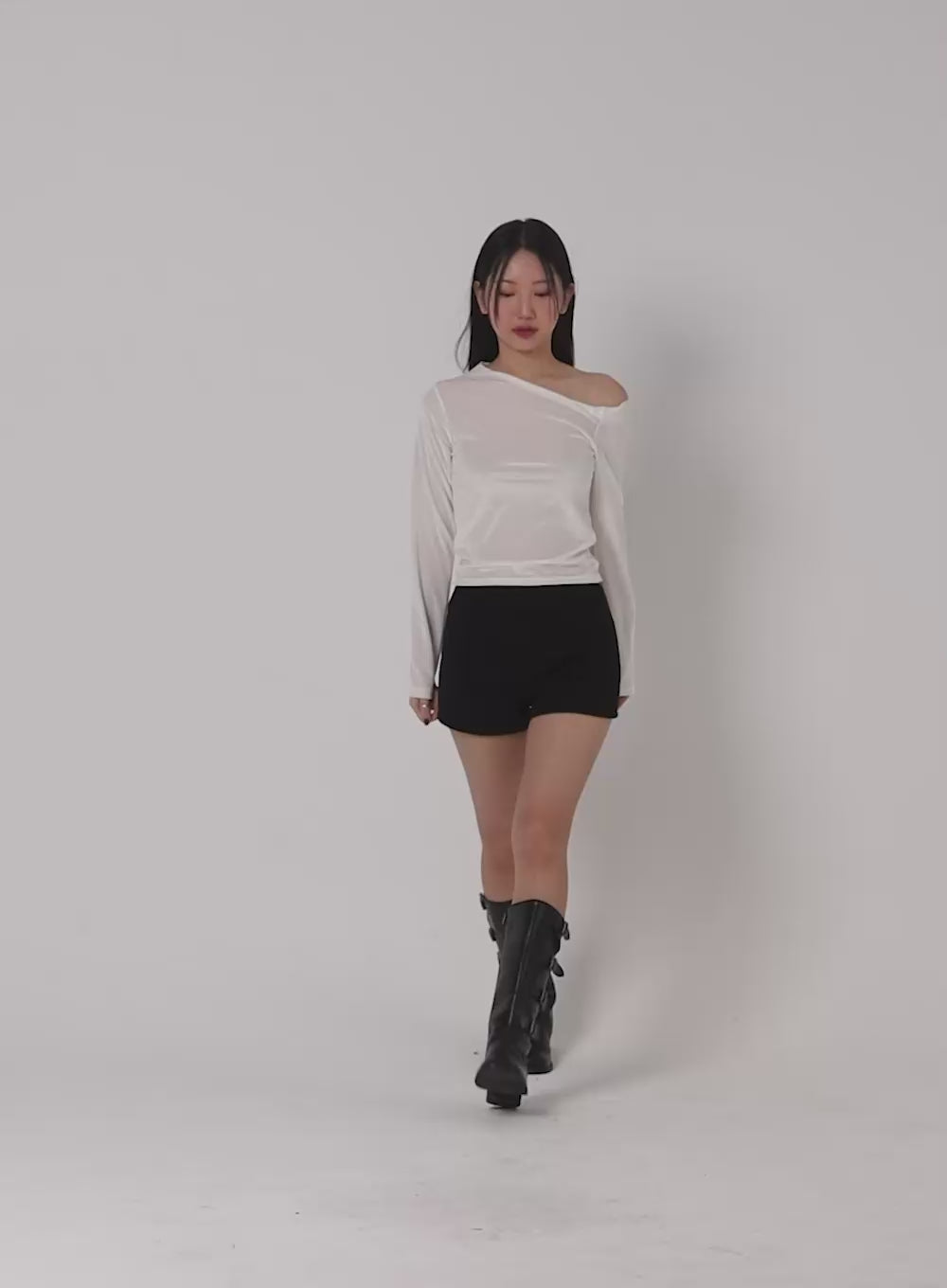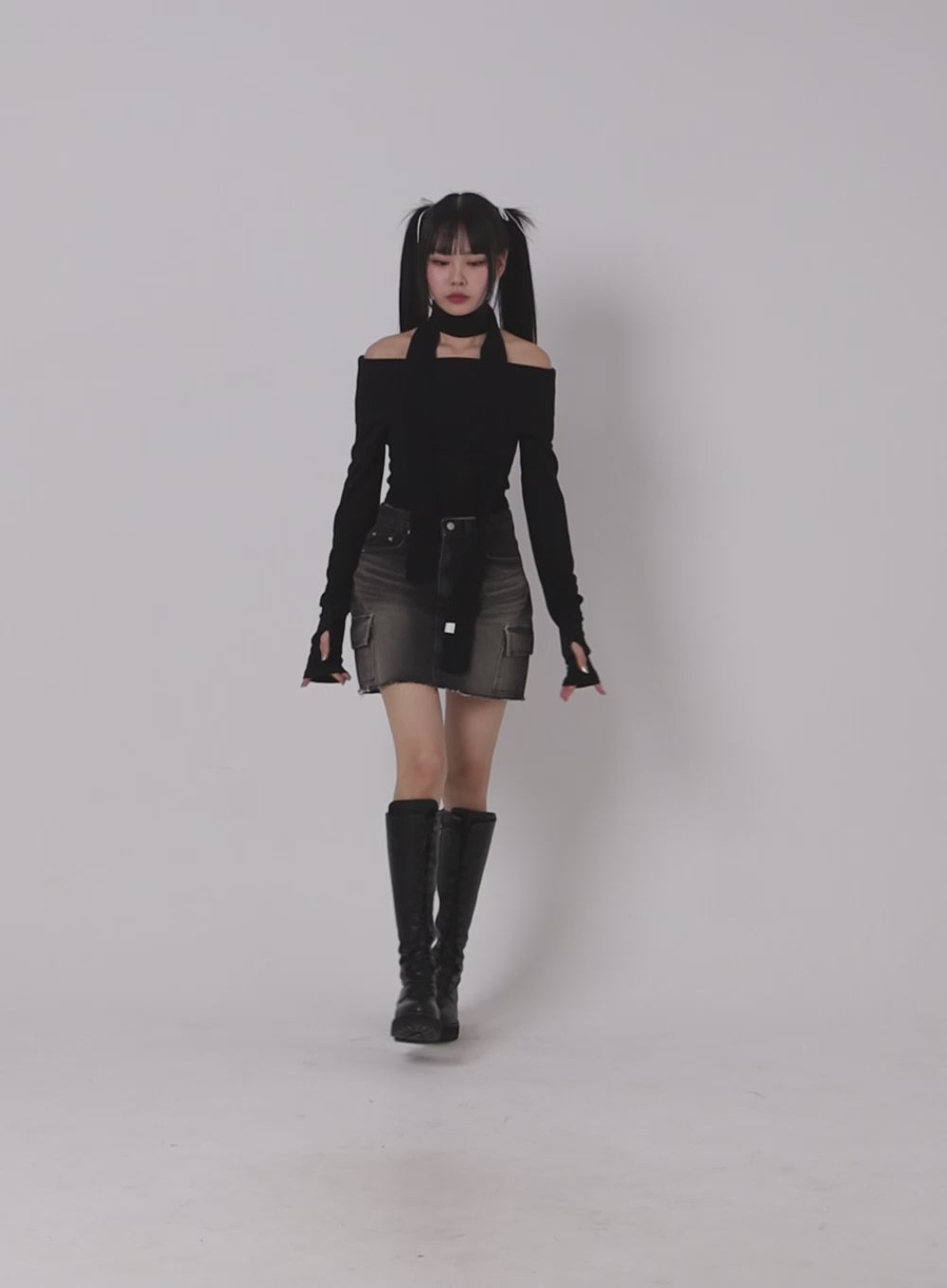 asymmetrical-belt-pleated-mini-skirt-cd308 / Black