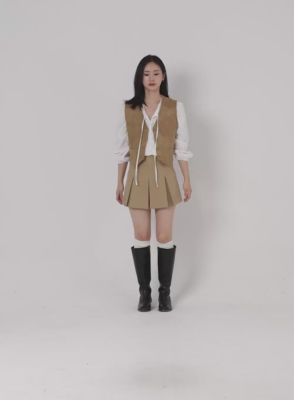corduroy-pleated-mini-skirt-co330 / Light beige