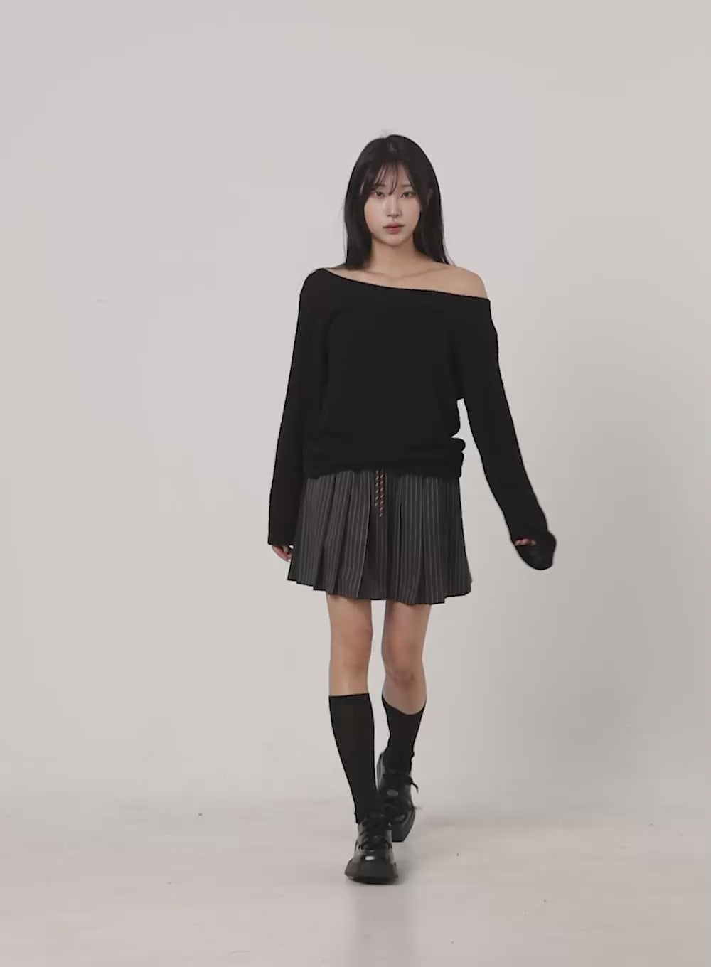 off-shoulder-loose-fit-sweatshirt-cs510 / Black