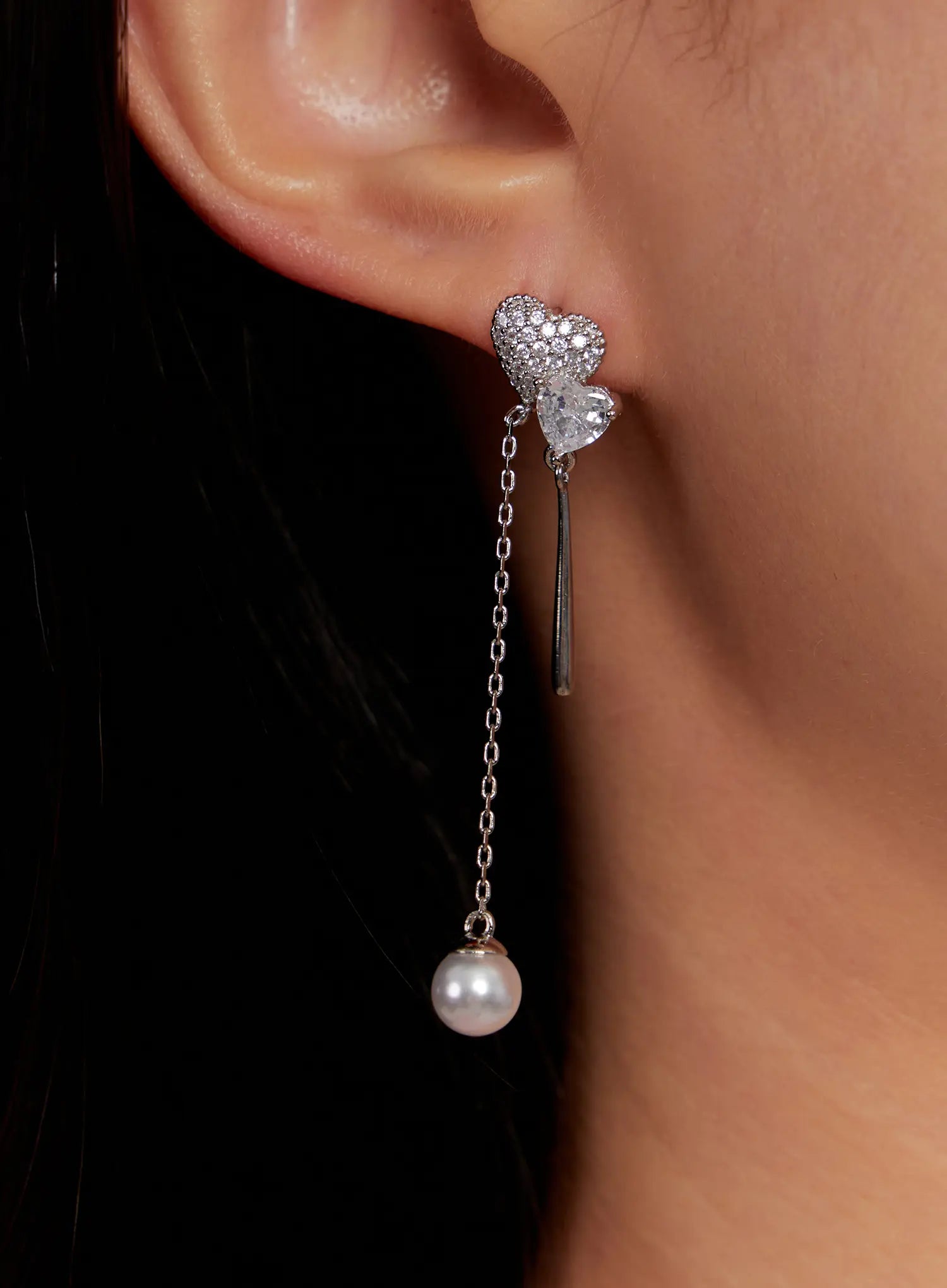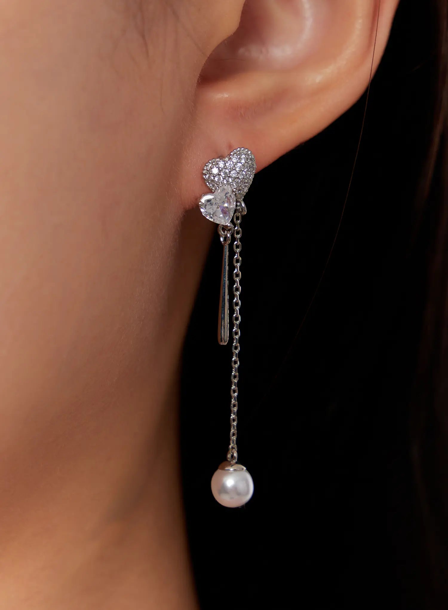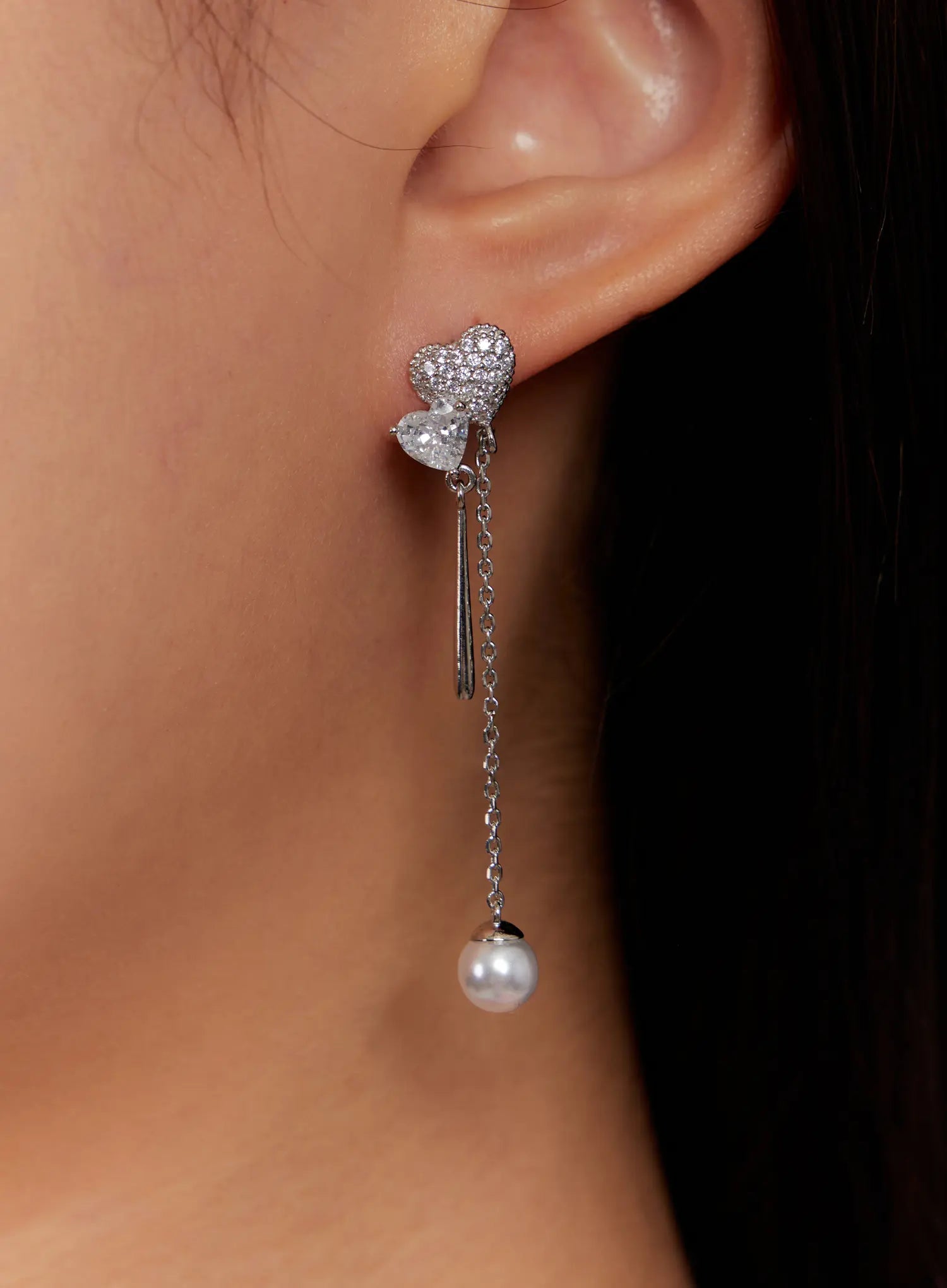 Crystal Heart Drop Chain Earrings IO527
