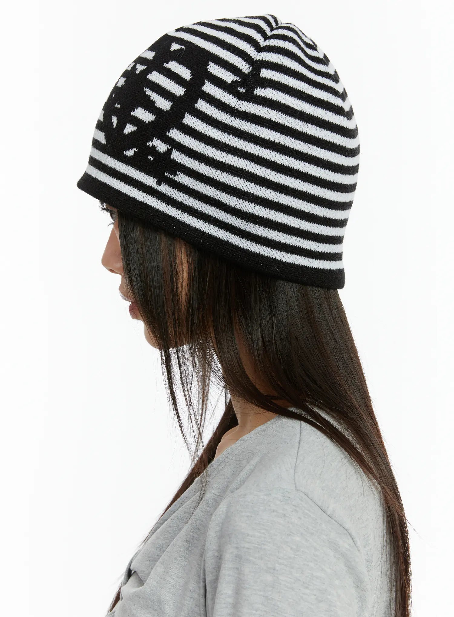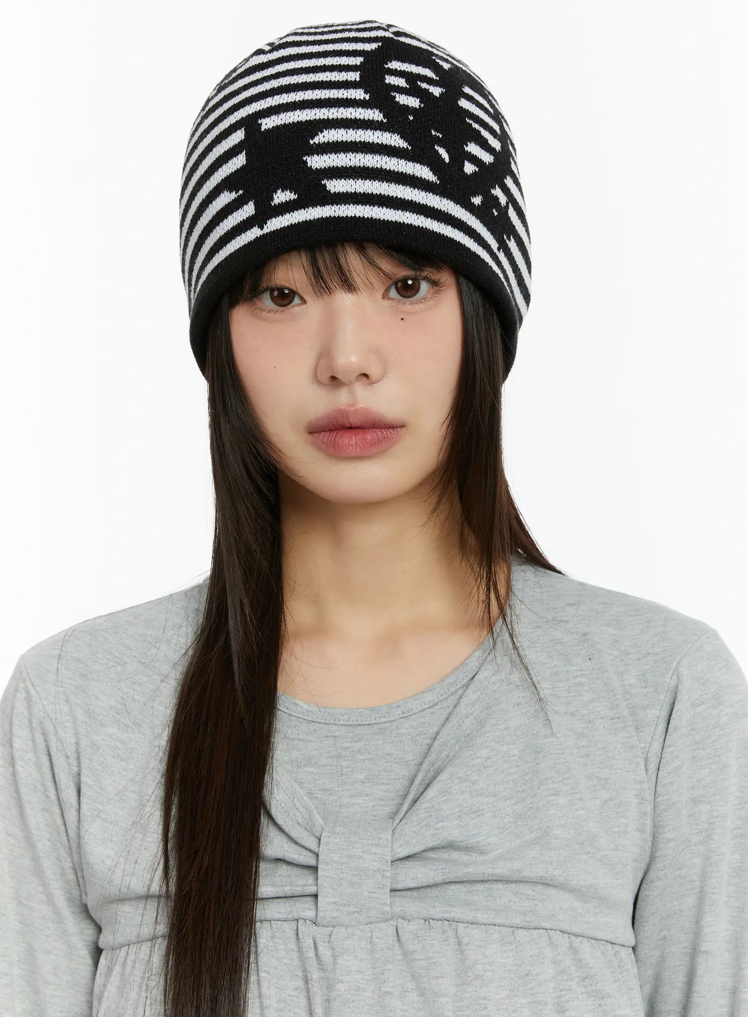 Striped Graphic Knit Beanie CF510