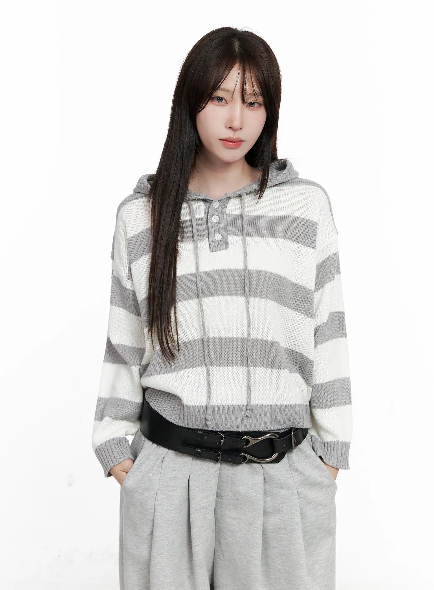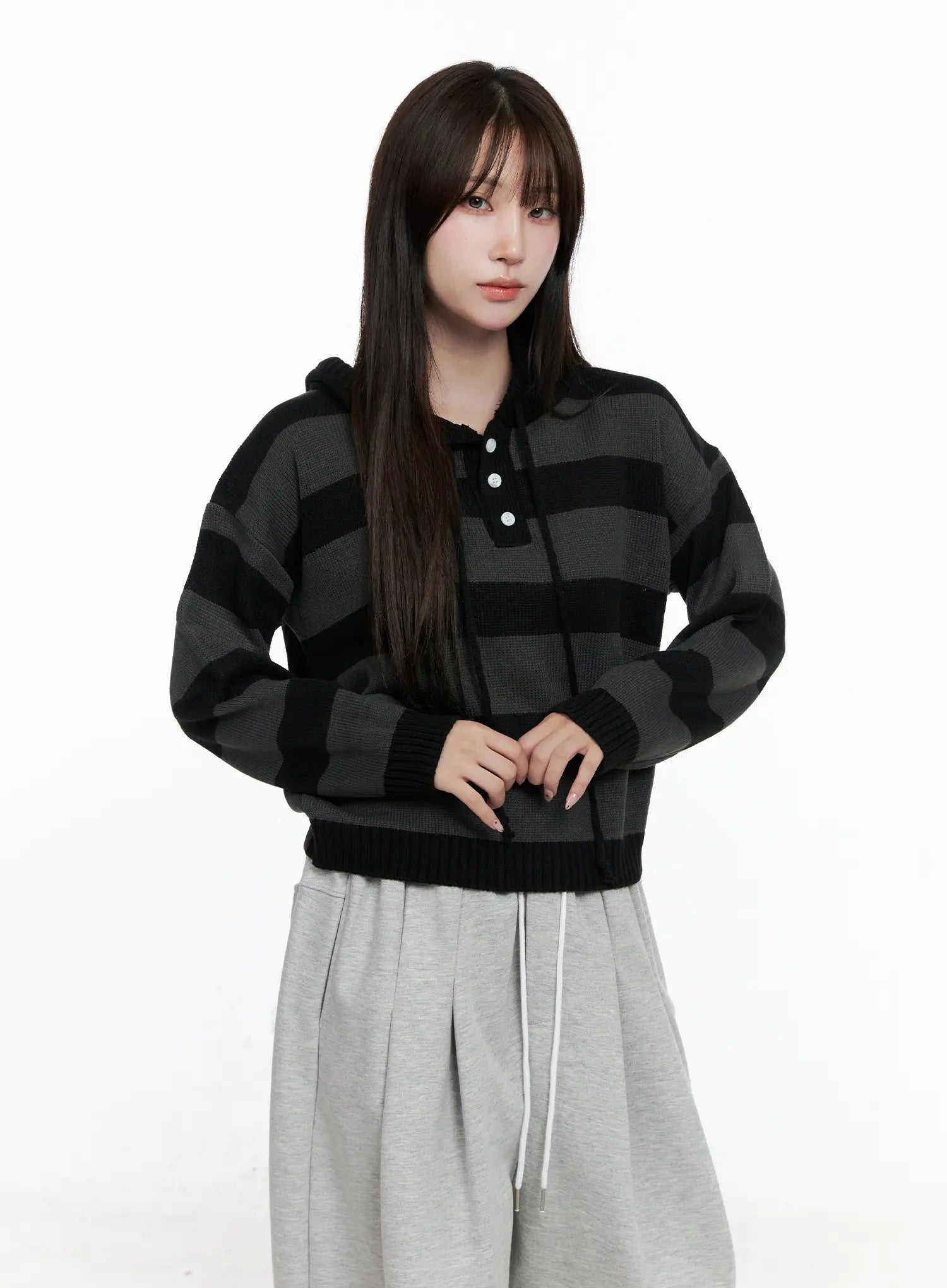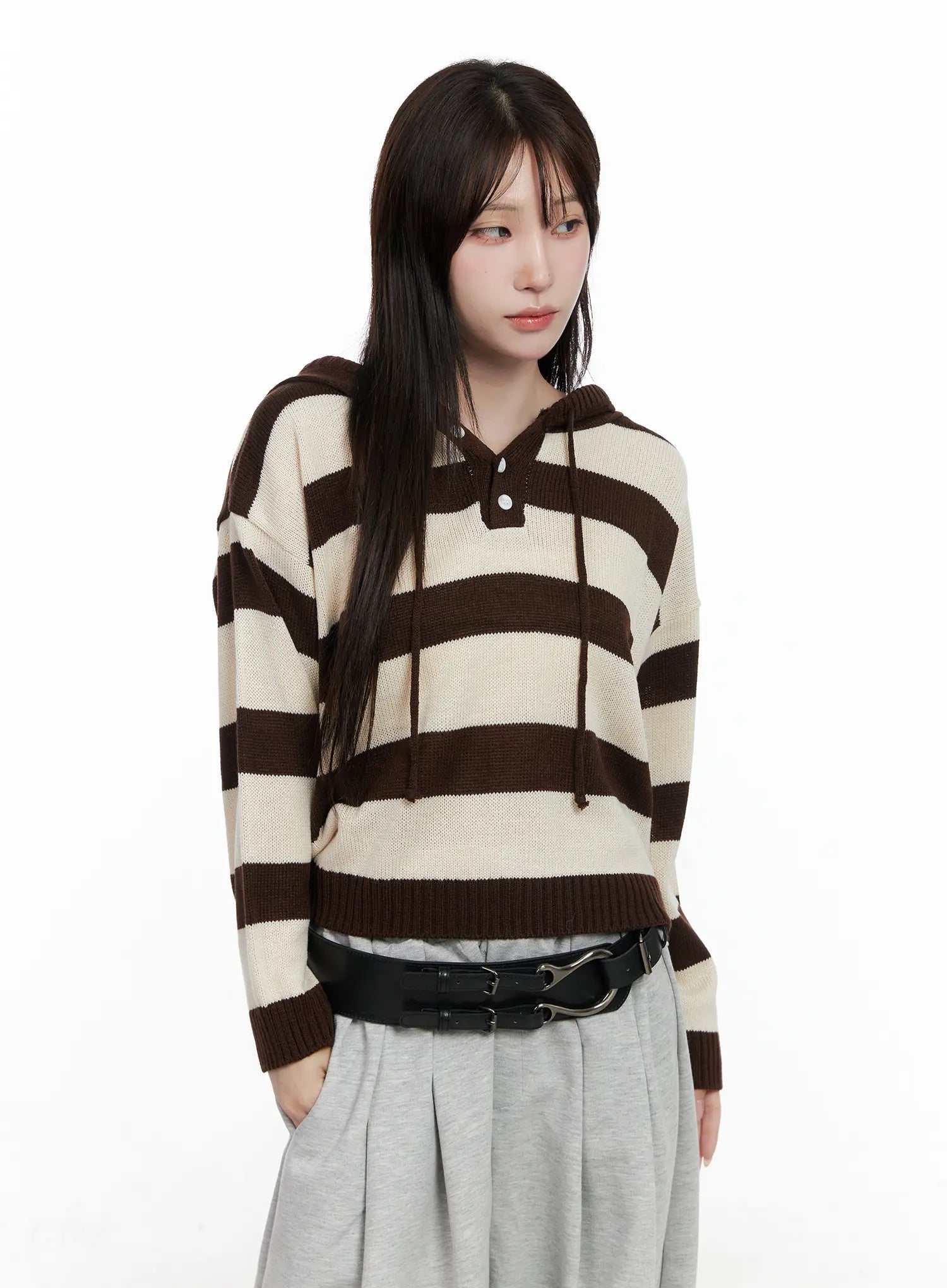 Striped Half-ButtonSweater Hoodie CO521