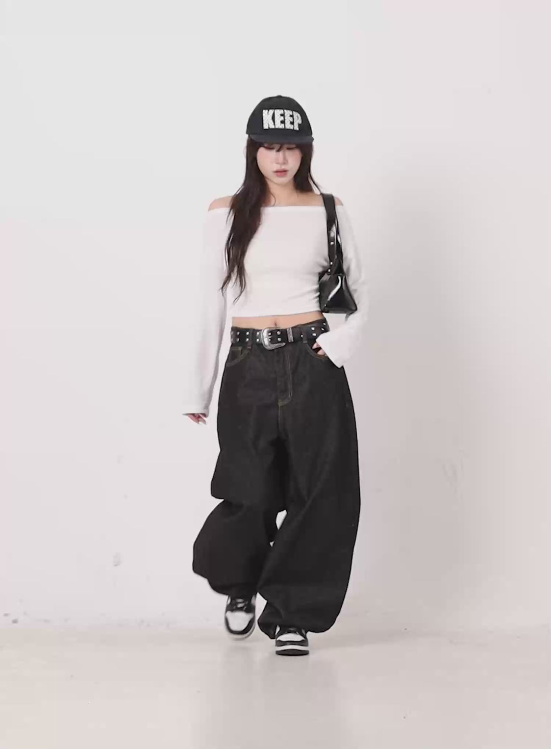 zaria-embellished-wide-leg-jeans-in528 / Black