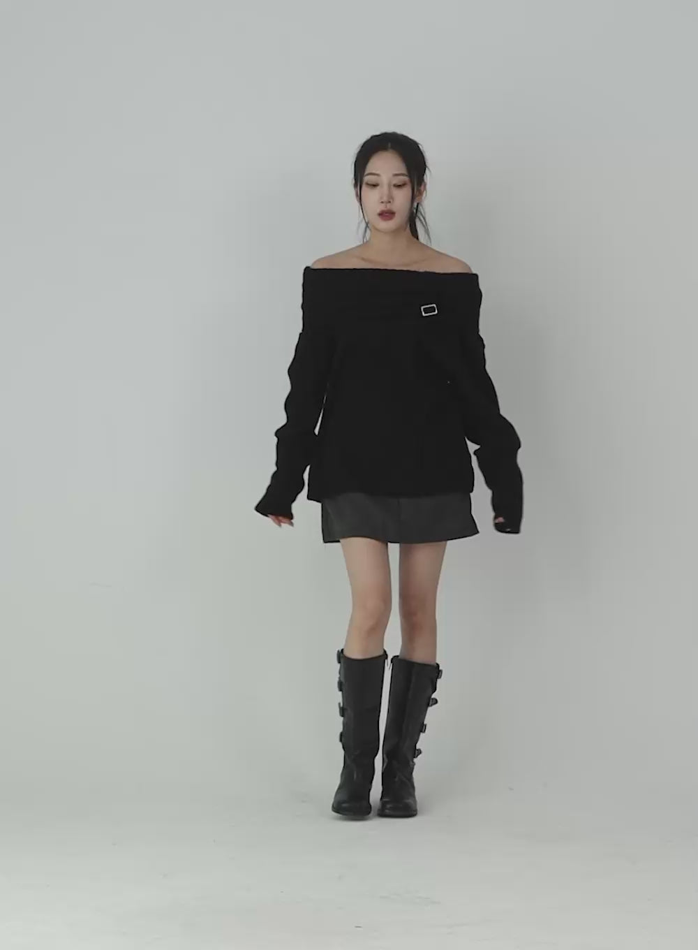 off-shoulder-buckle-knit-sweater-cd322 / Black