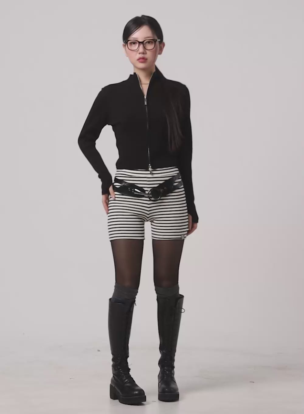 solid-buckle-cropped-long-sleeve-om426 / Black