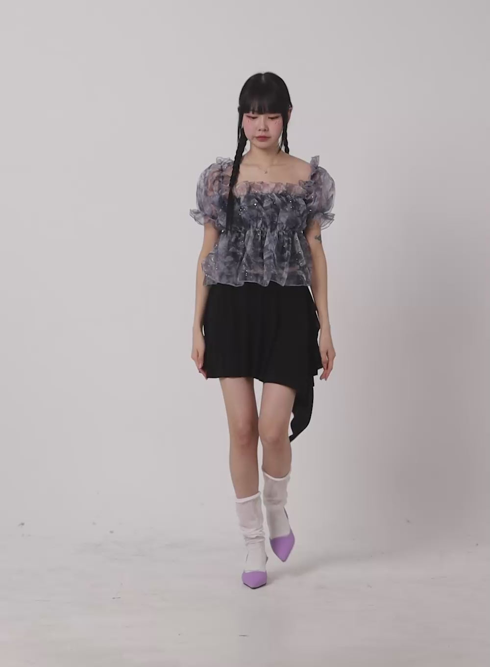 layered-floral-mini-skirt-om428 / Black