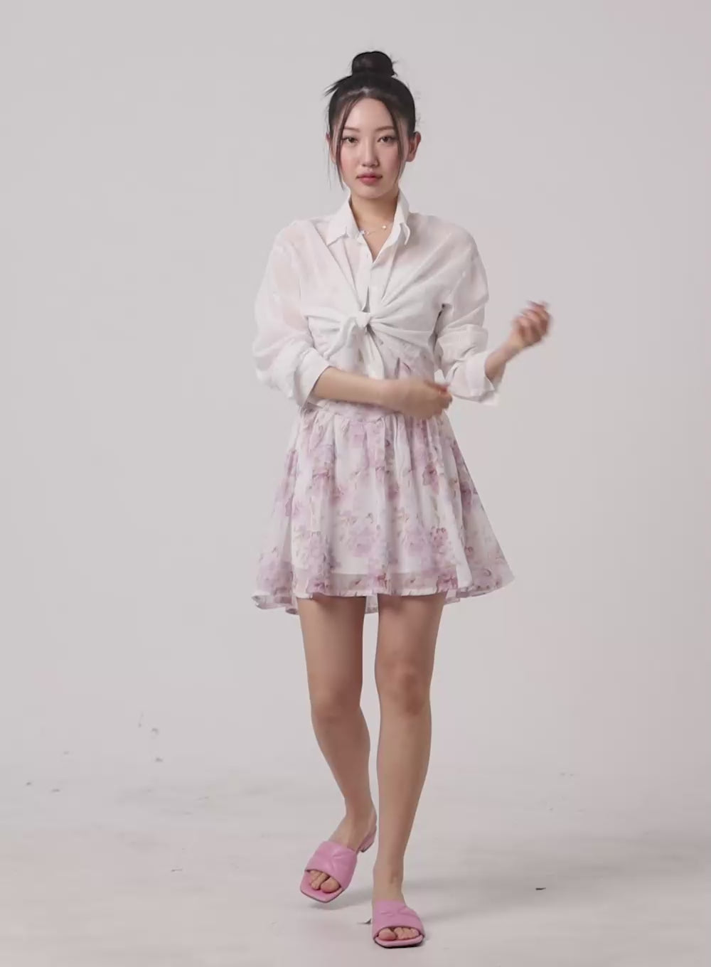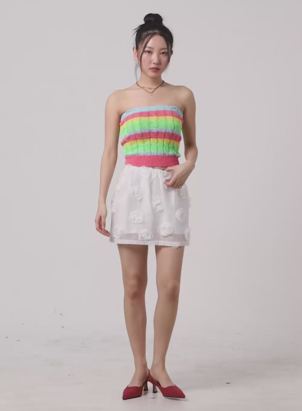 layered-floral-mini-skirt-om428 / White