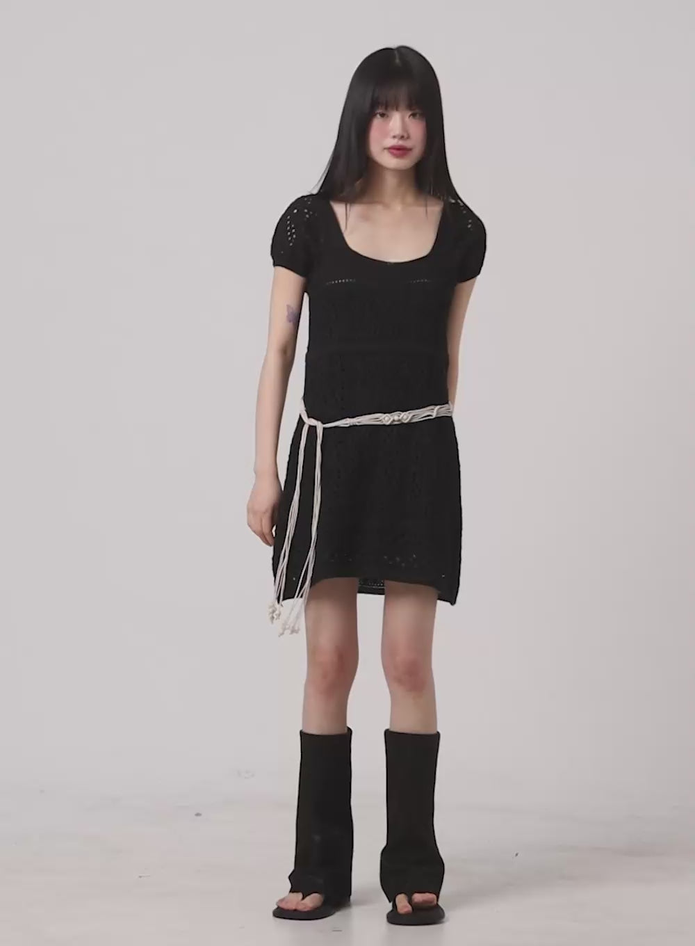 hooded-crop-summer-knit-top-cm426 / Black