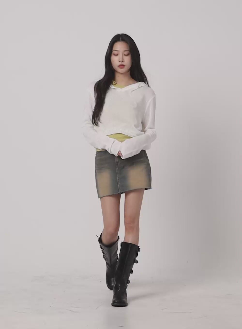 solid-buckle-cropped-long-sleeve-om426 / White