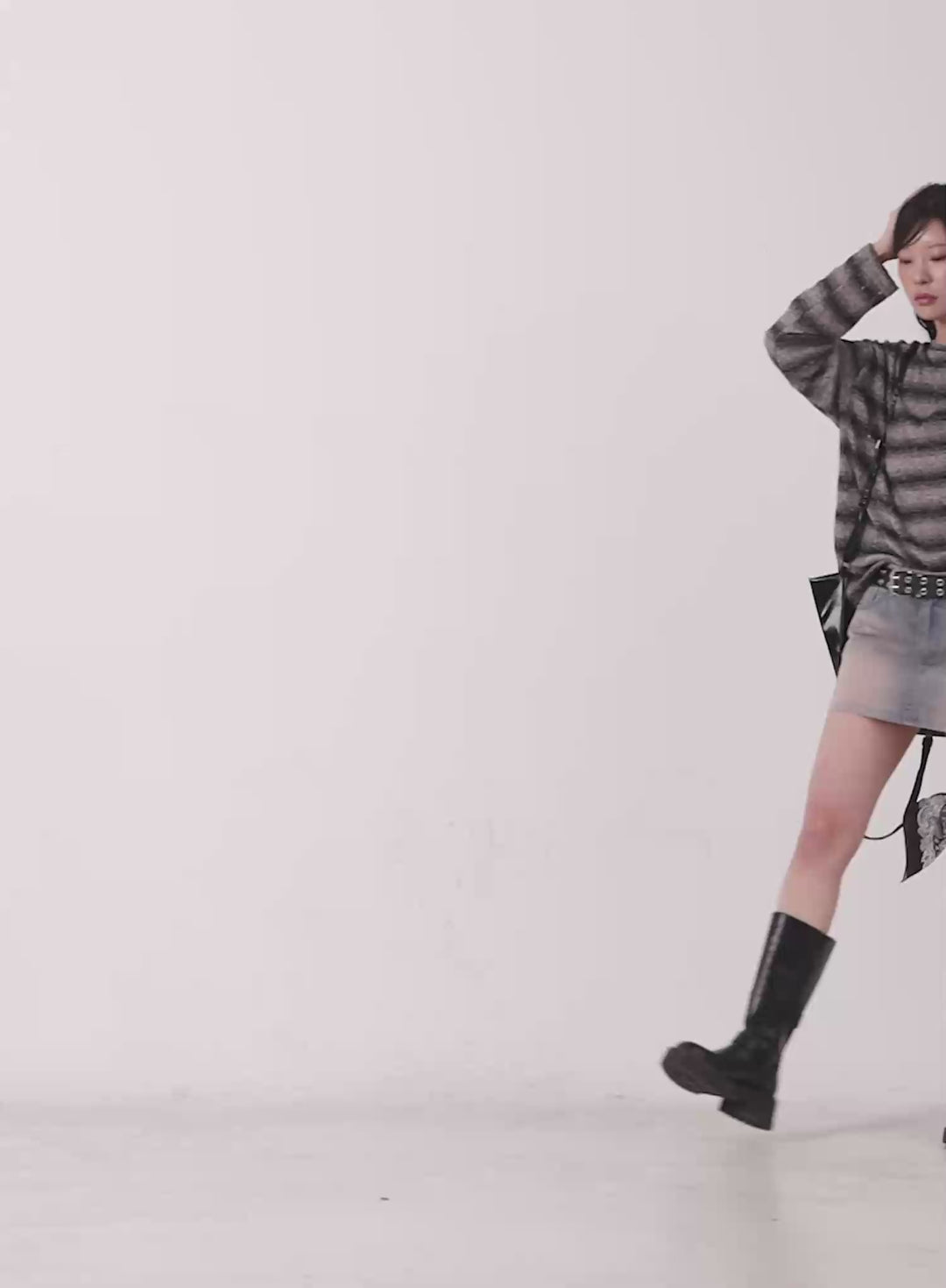 stripe-long-sleeve-off-shoulder-top-im524 / Dark gray