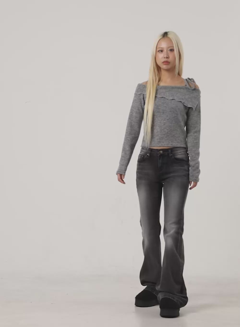cable-knit-off-shoulder-sweater-cn525 / Dark gray