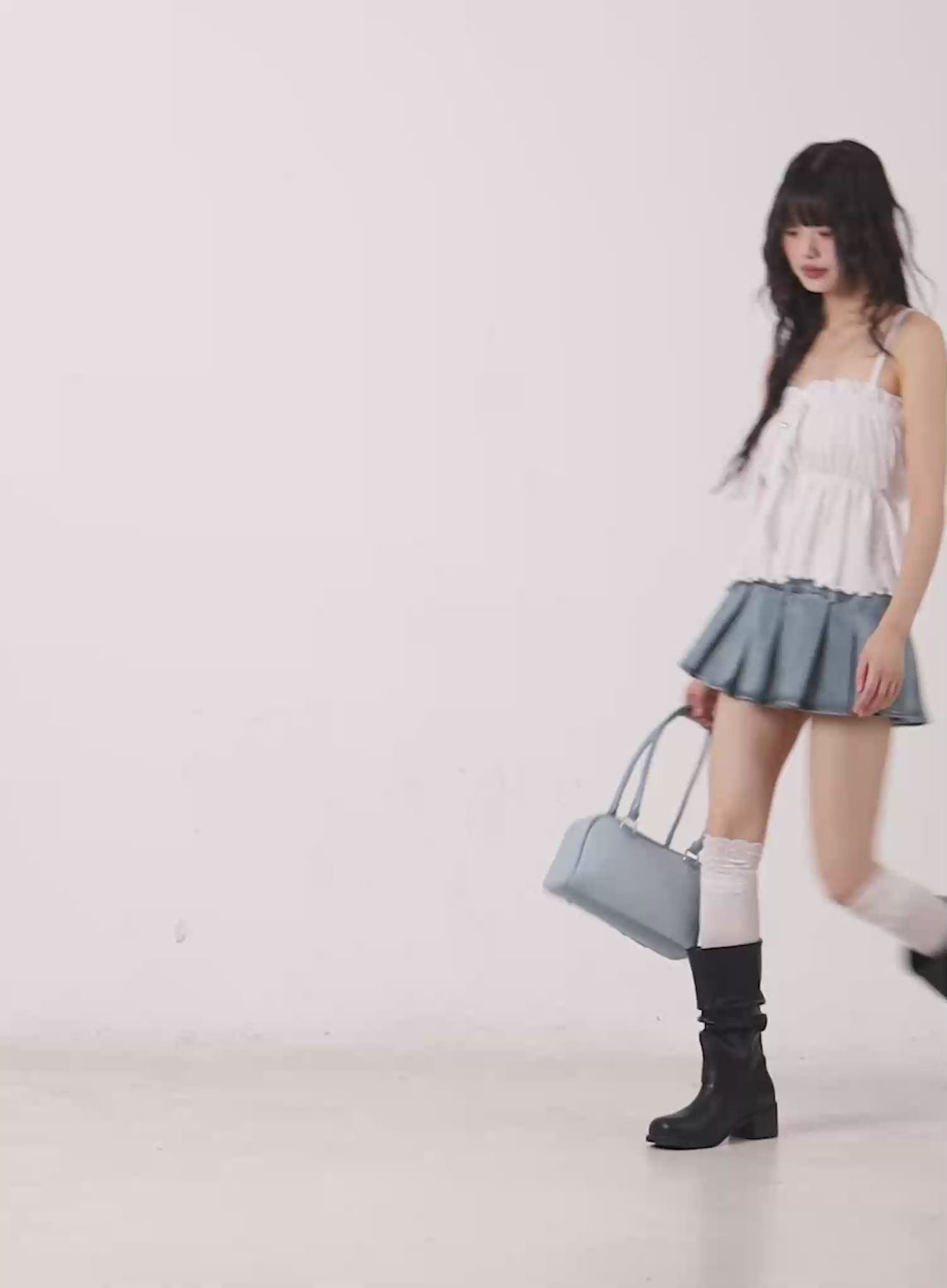 ruffle-banded-cotton-mini-skirt-cg412 / Black