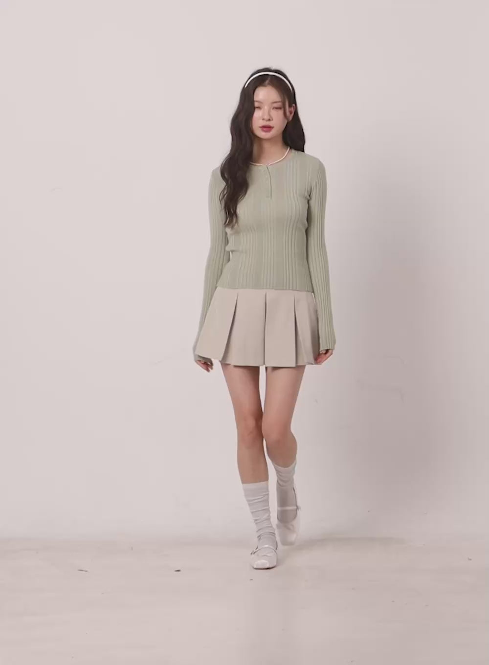 high-waisted-pleated-mini-skirt-ca502 / Beige