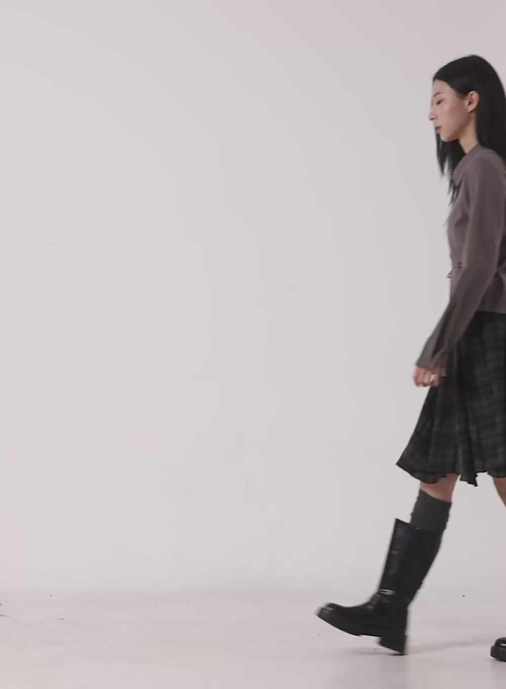 plaid-pleated-mini-skirt-cm528 / Dark beige