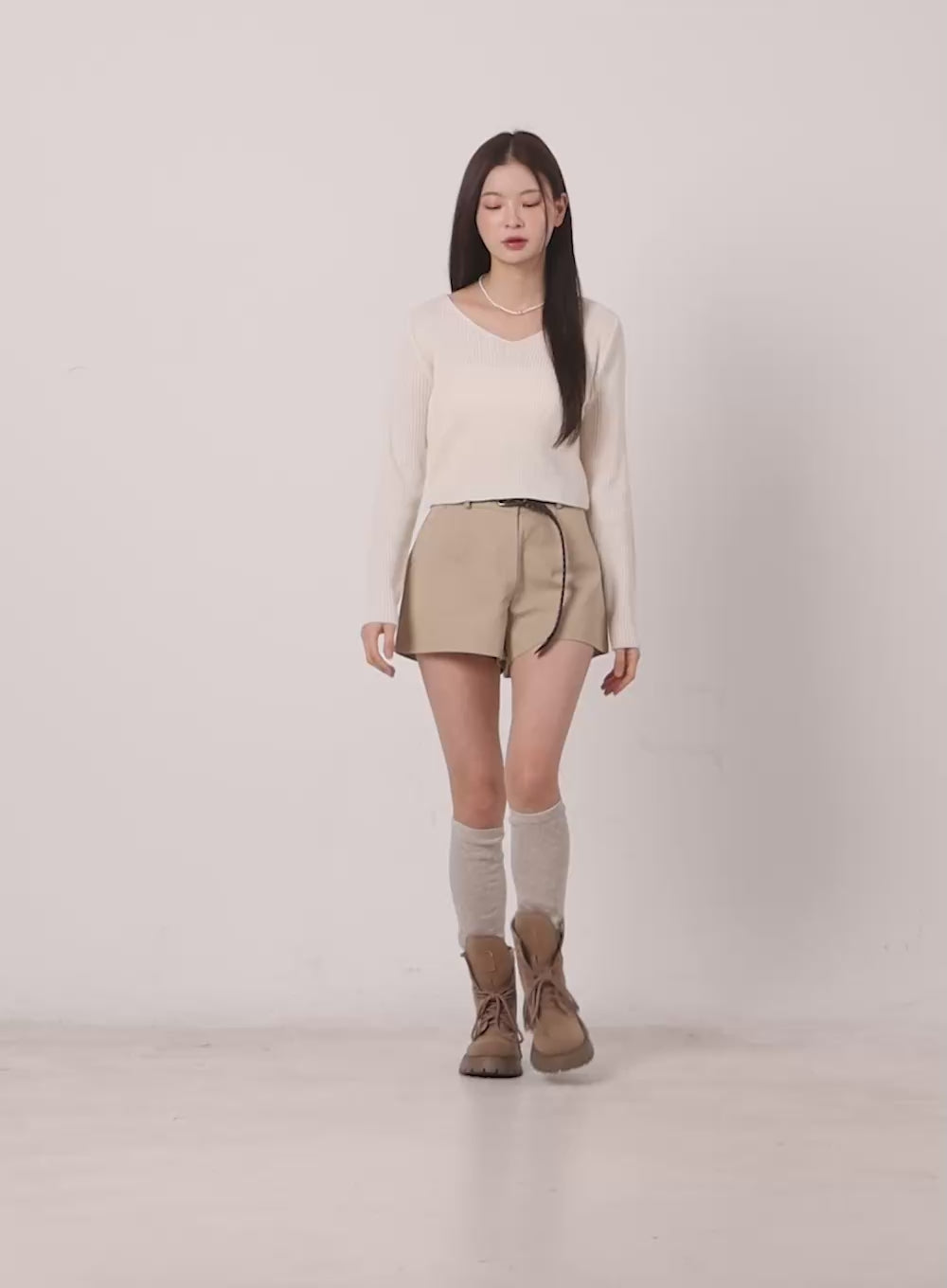 velvet-ruffle-mini-skirt-cj508 / Beige