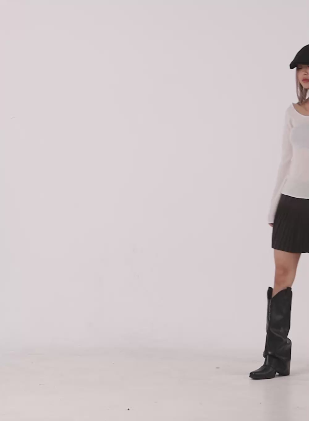 side-zip-up-pleated-mini-skirt-cs420 / Black