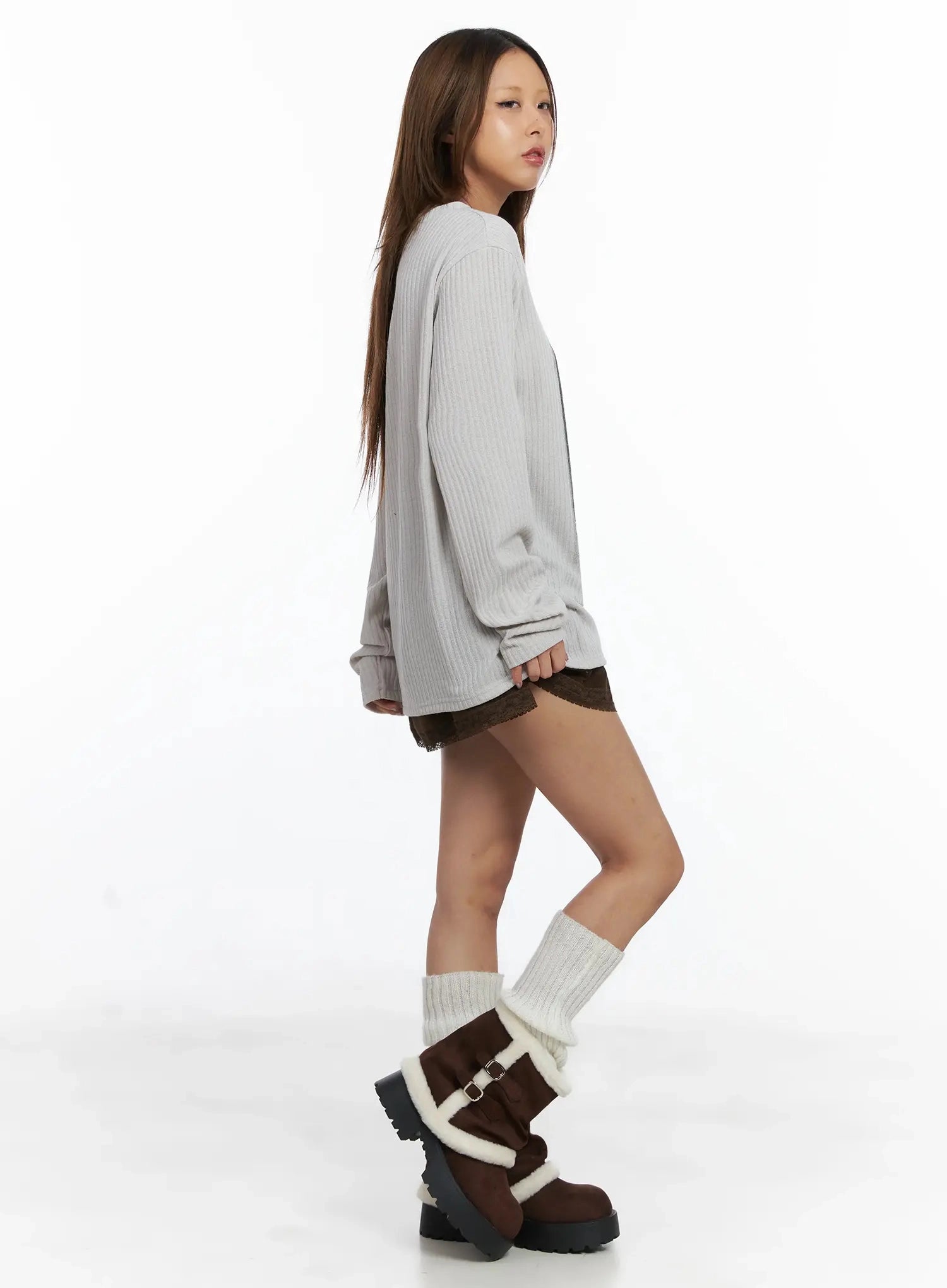 Model is wearing size S/M and the color Brown.
