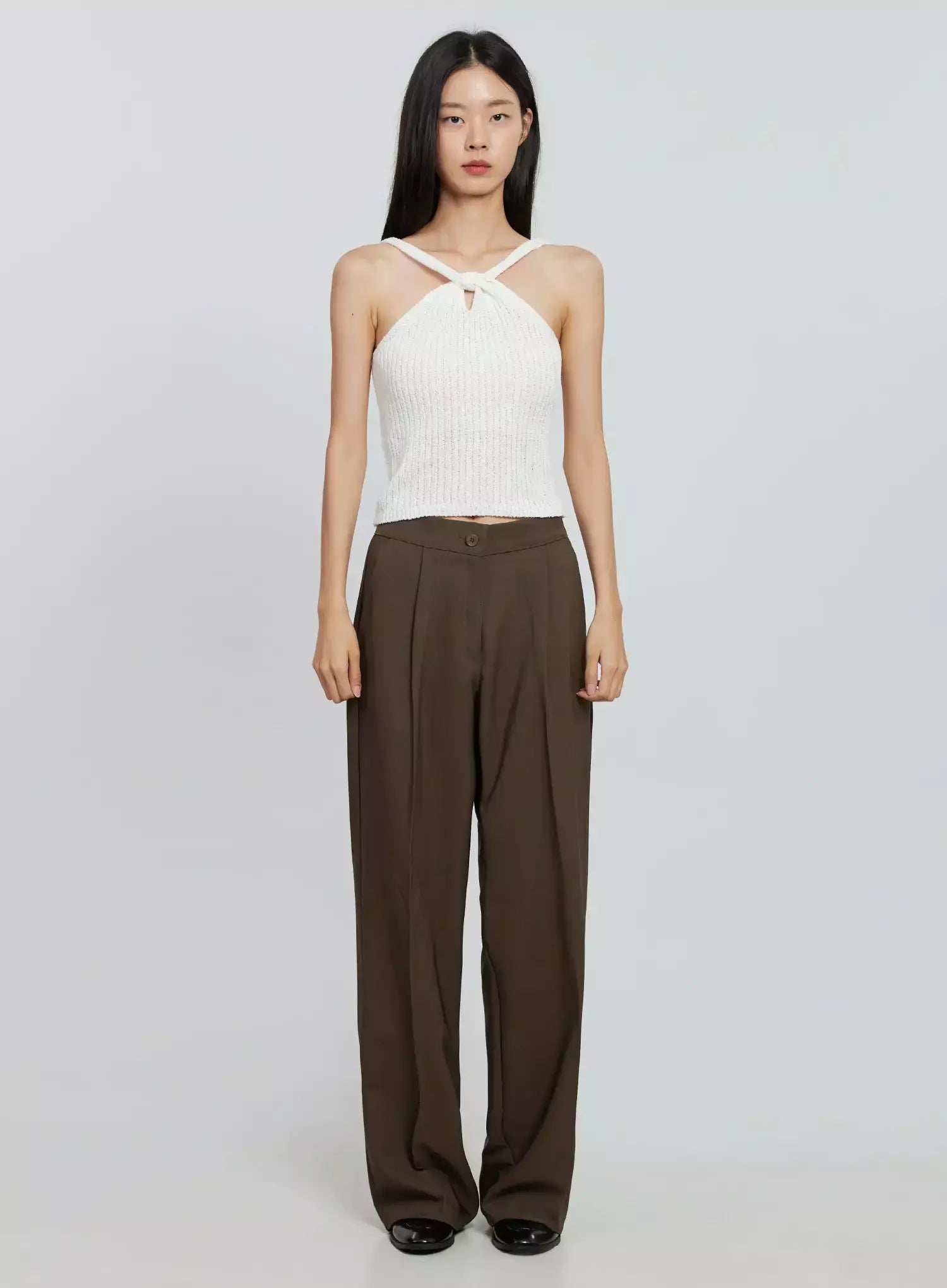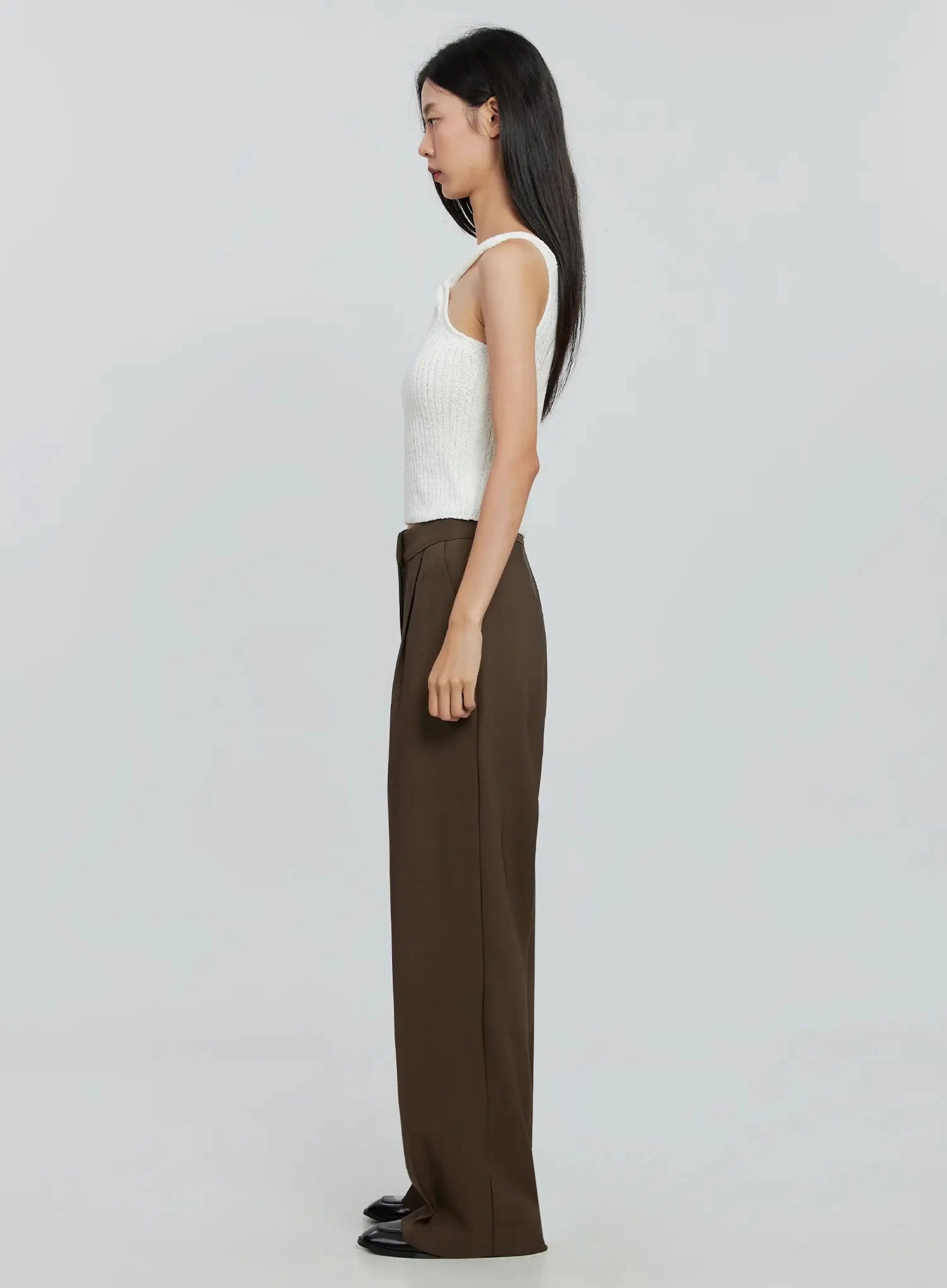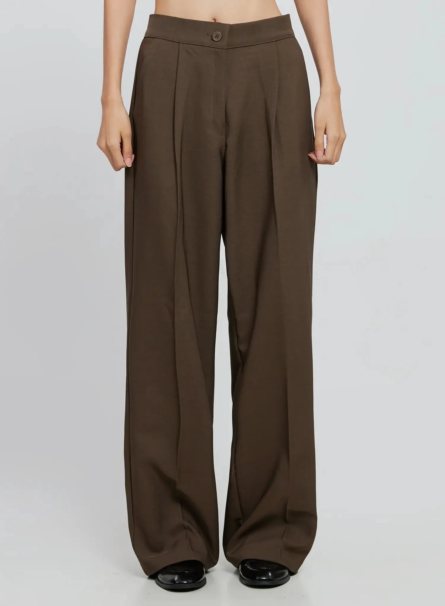 Brown Wide Leg Tailored Pants IO530