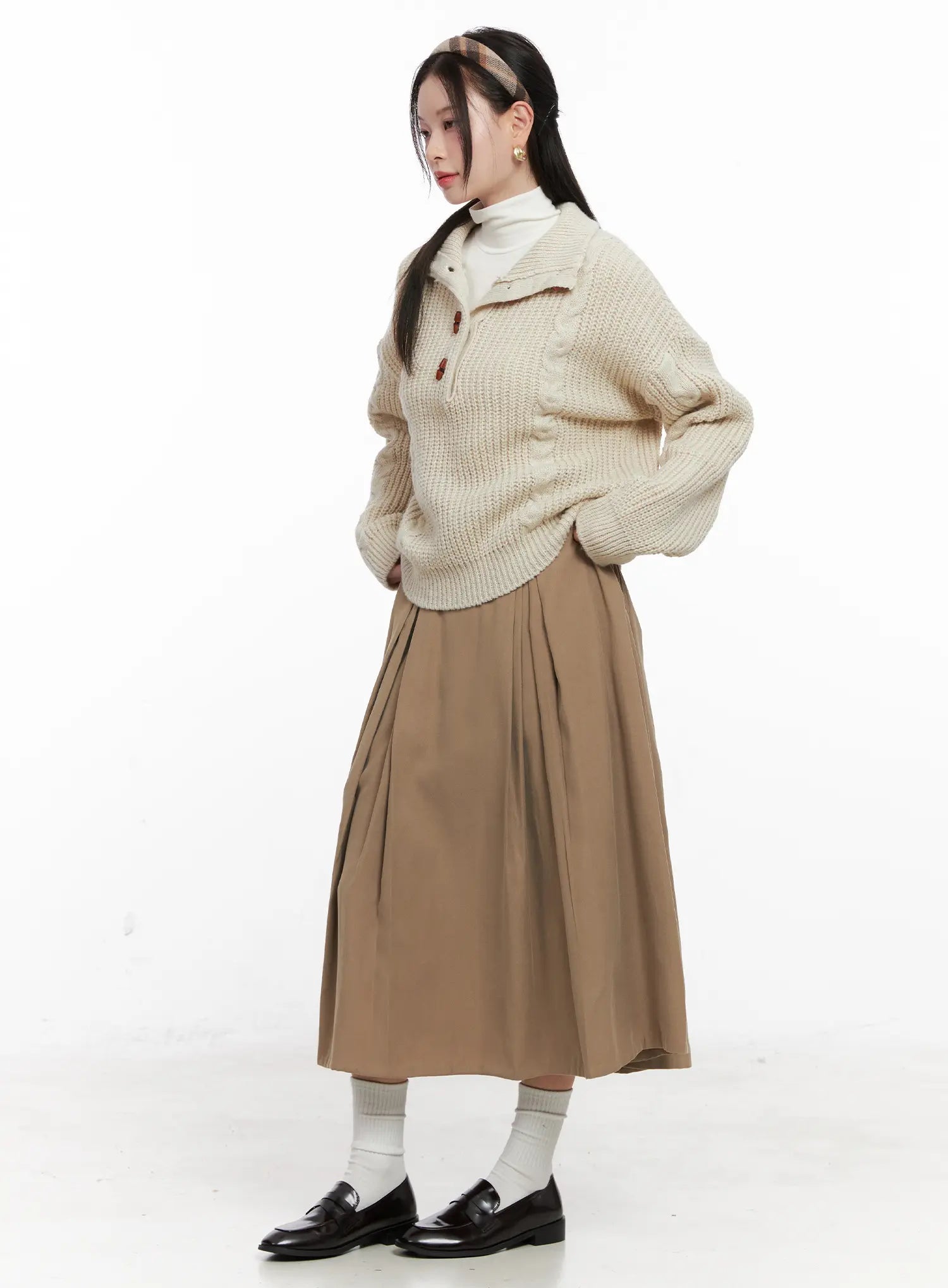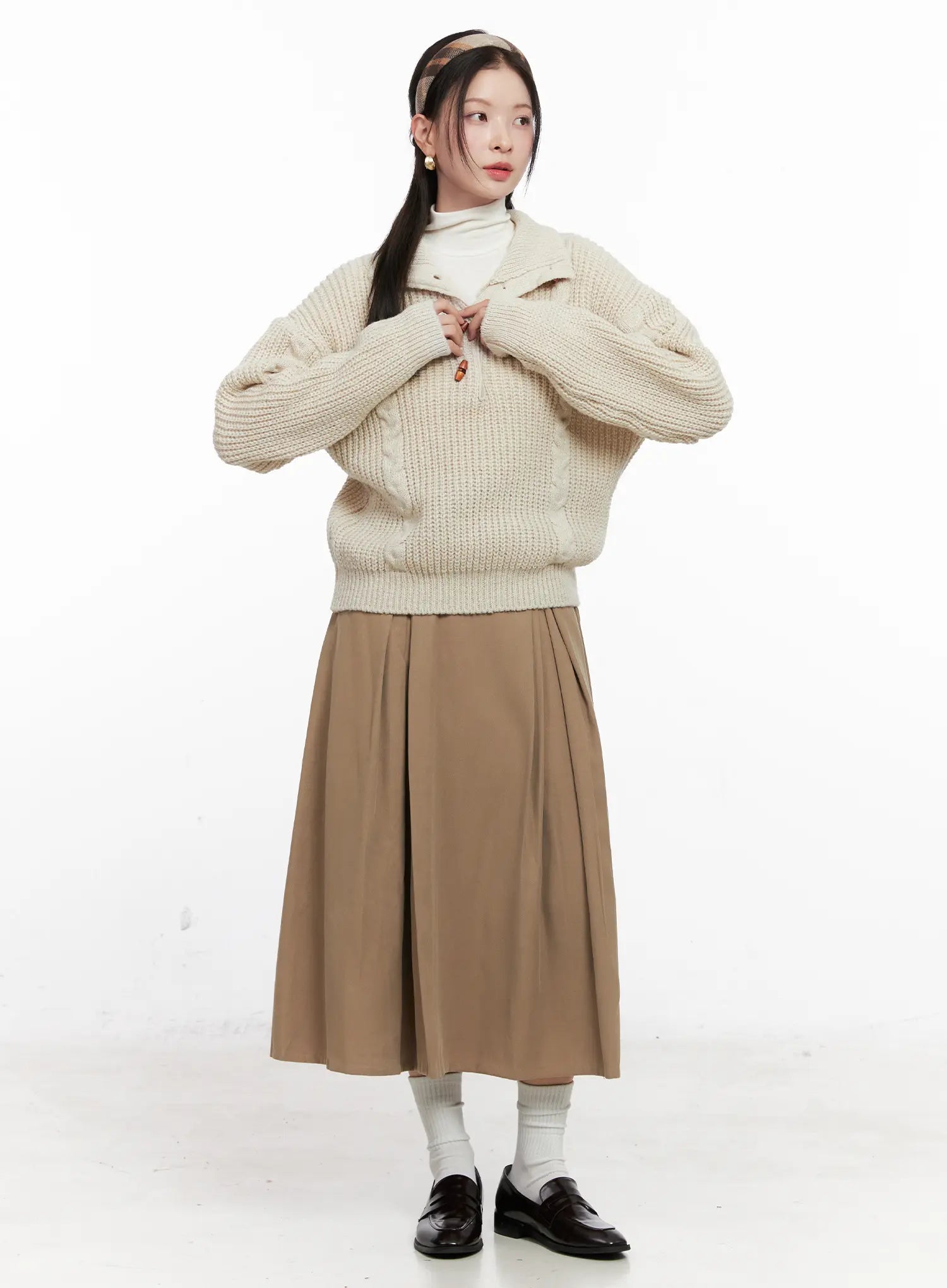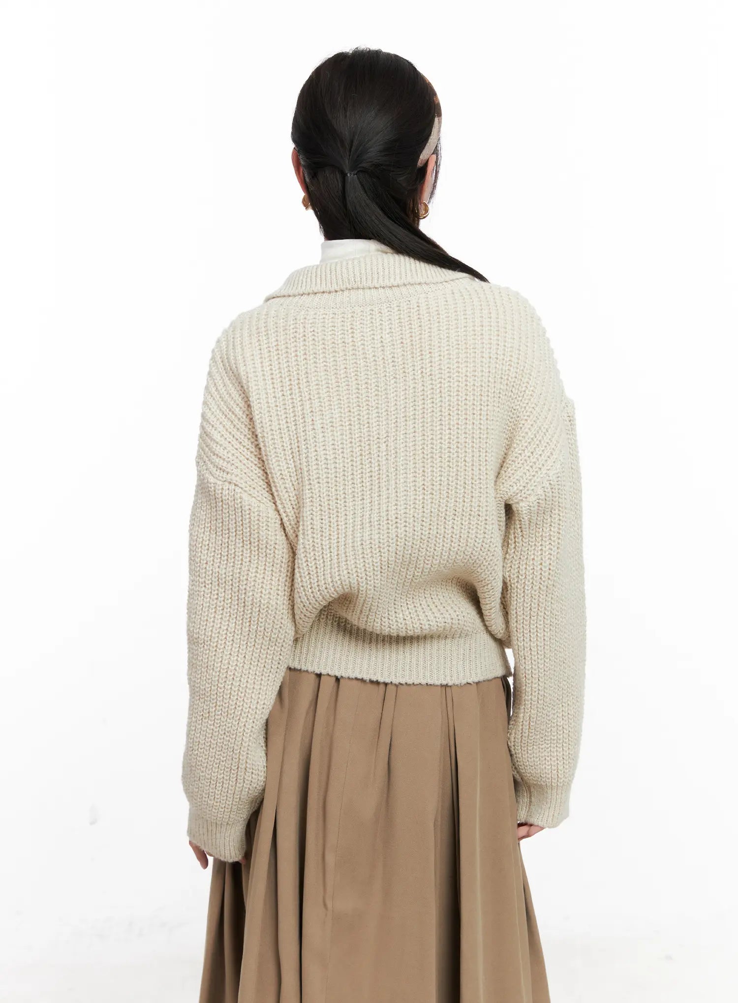 Model is wearing size S/M and the color Light beige.