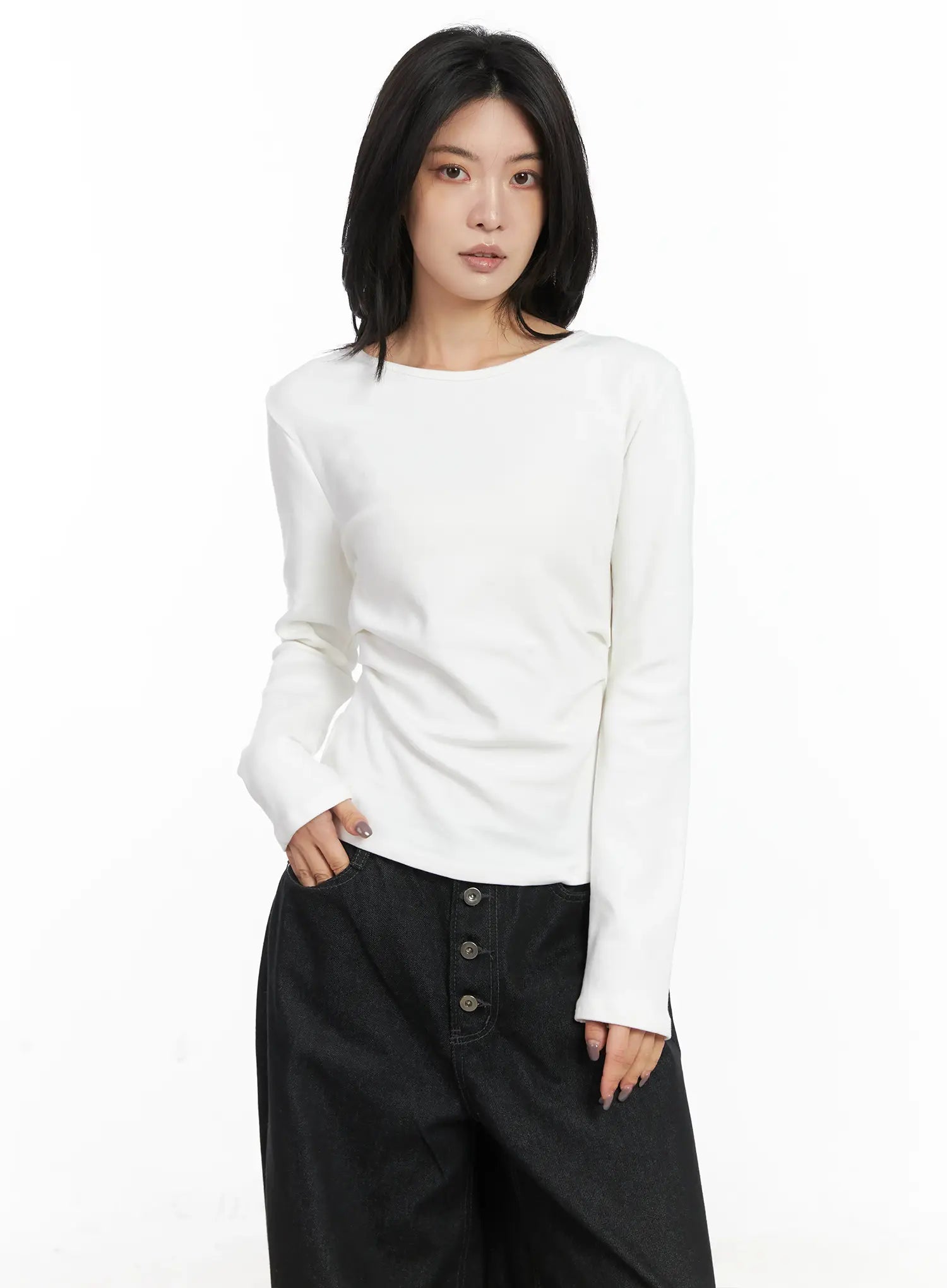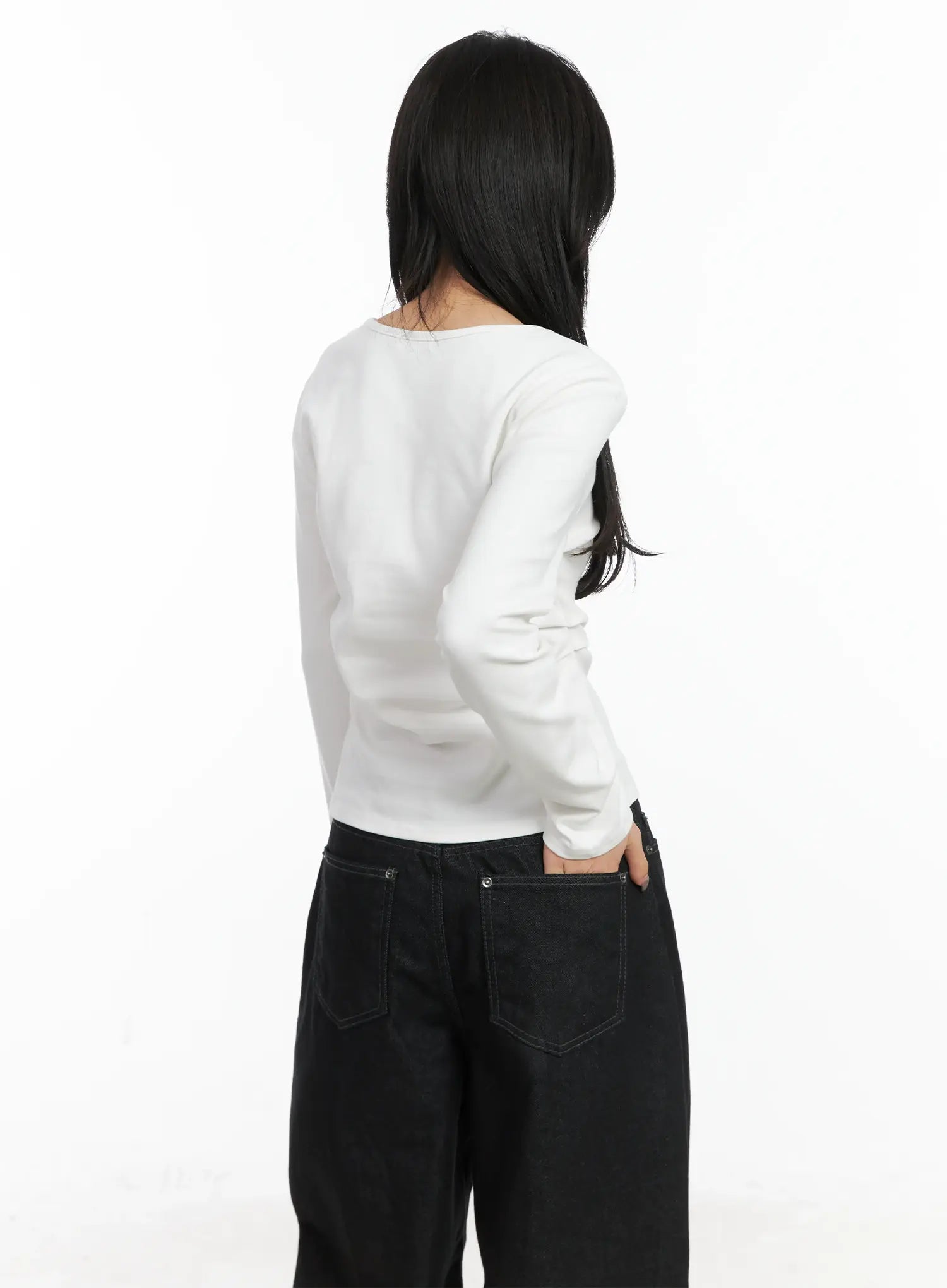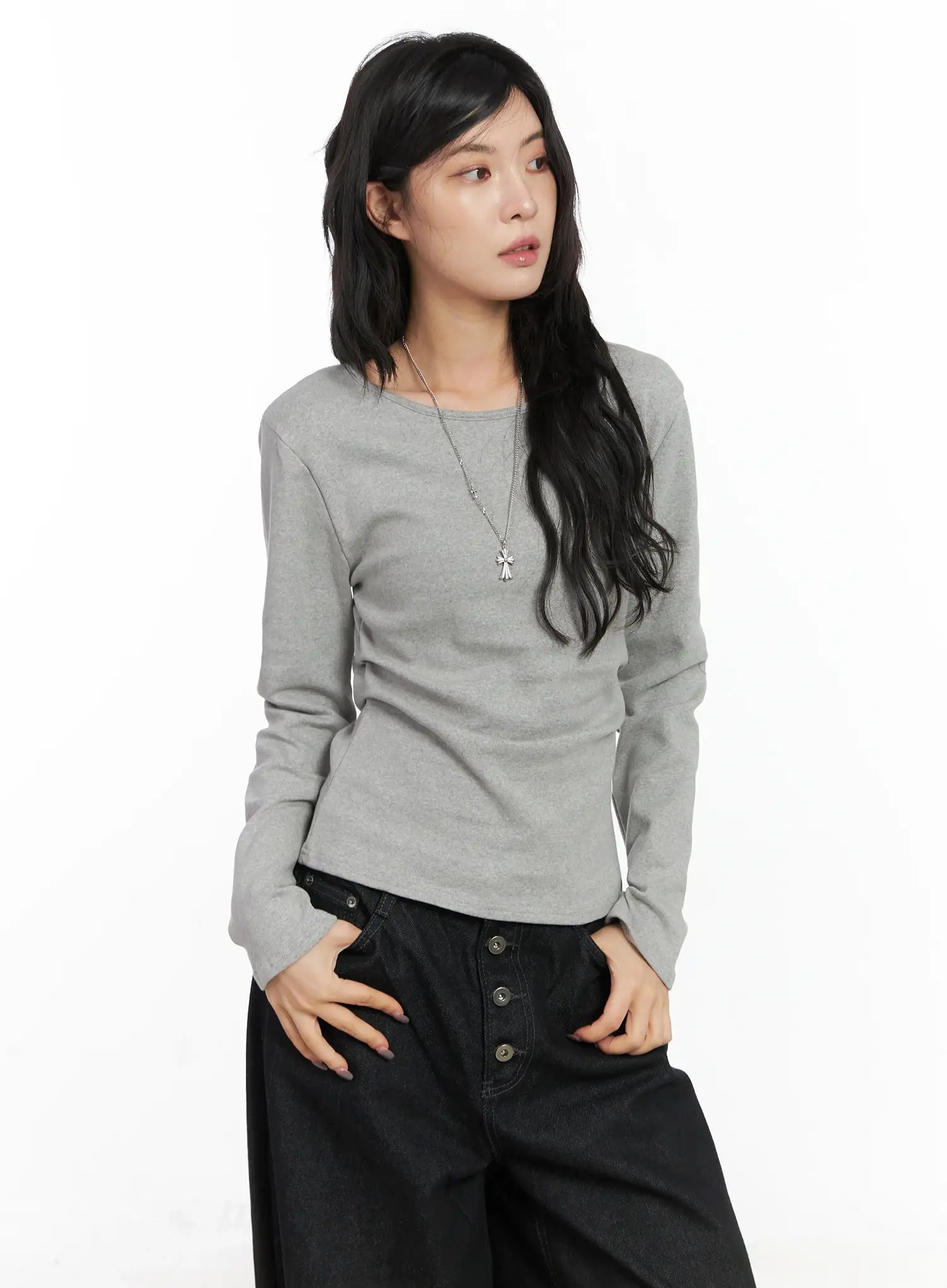 Classic U-Neck Pin-Tuck Long Sleeve Tee CN528