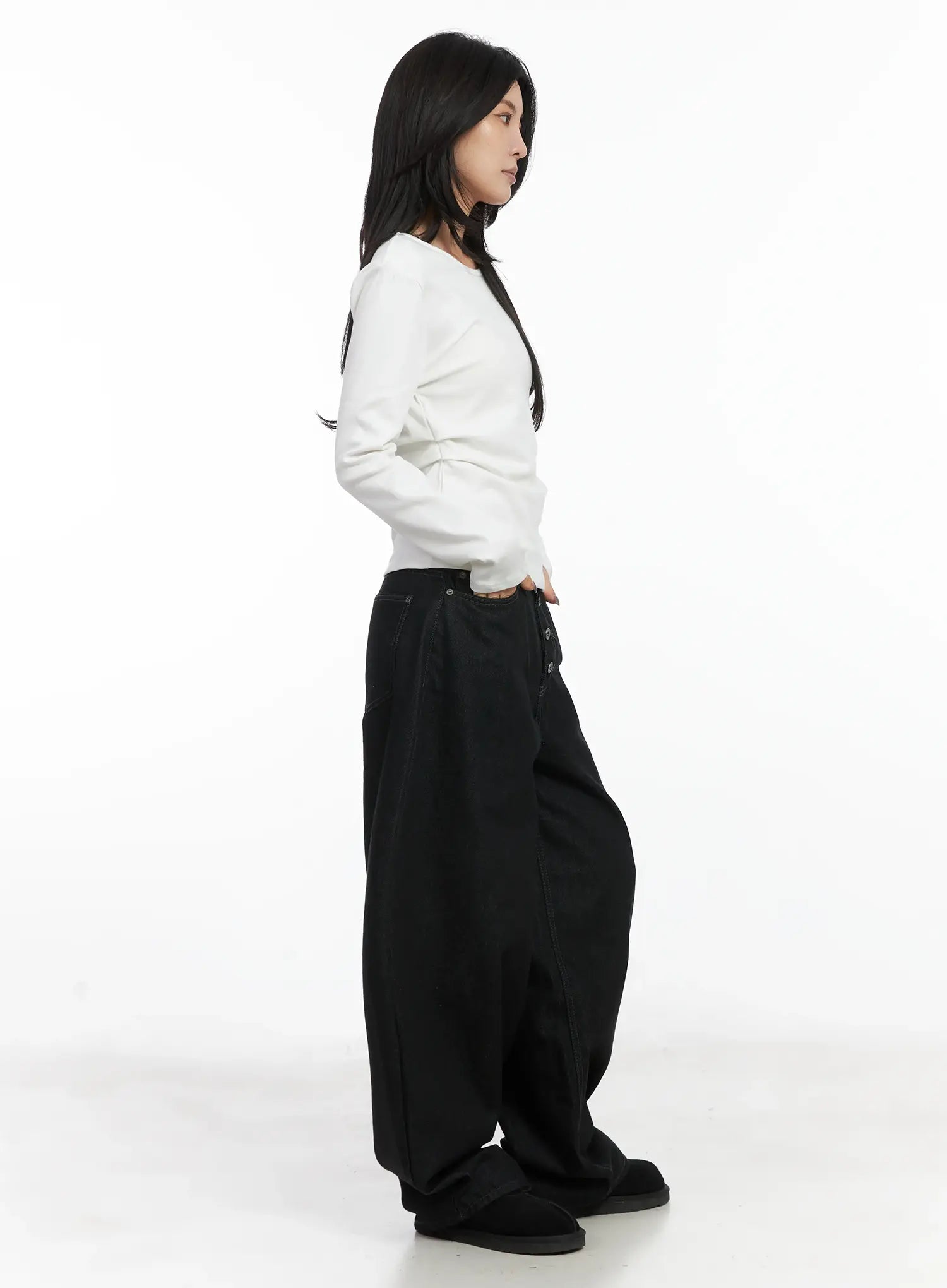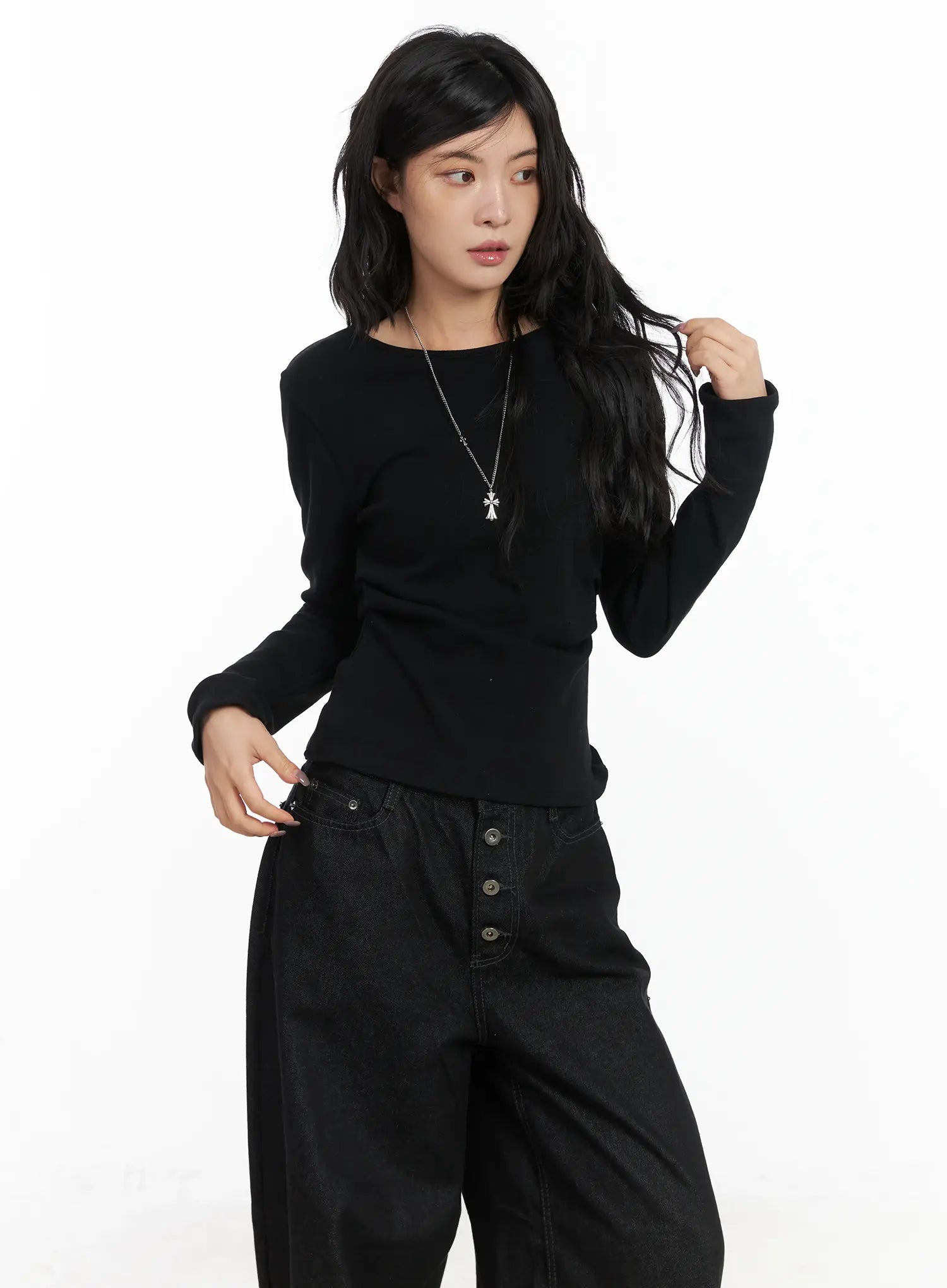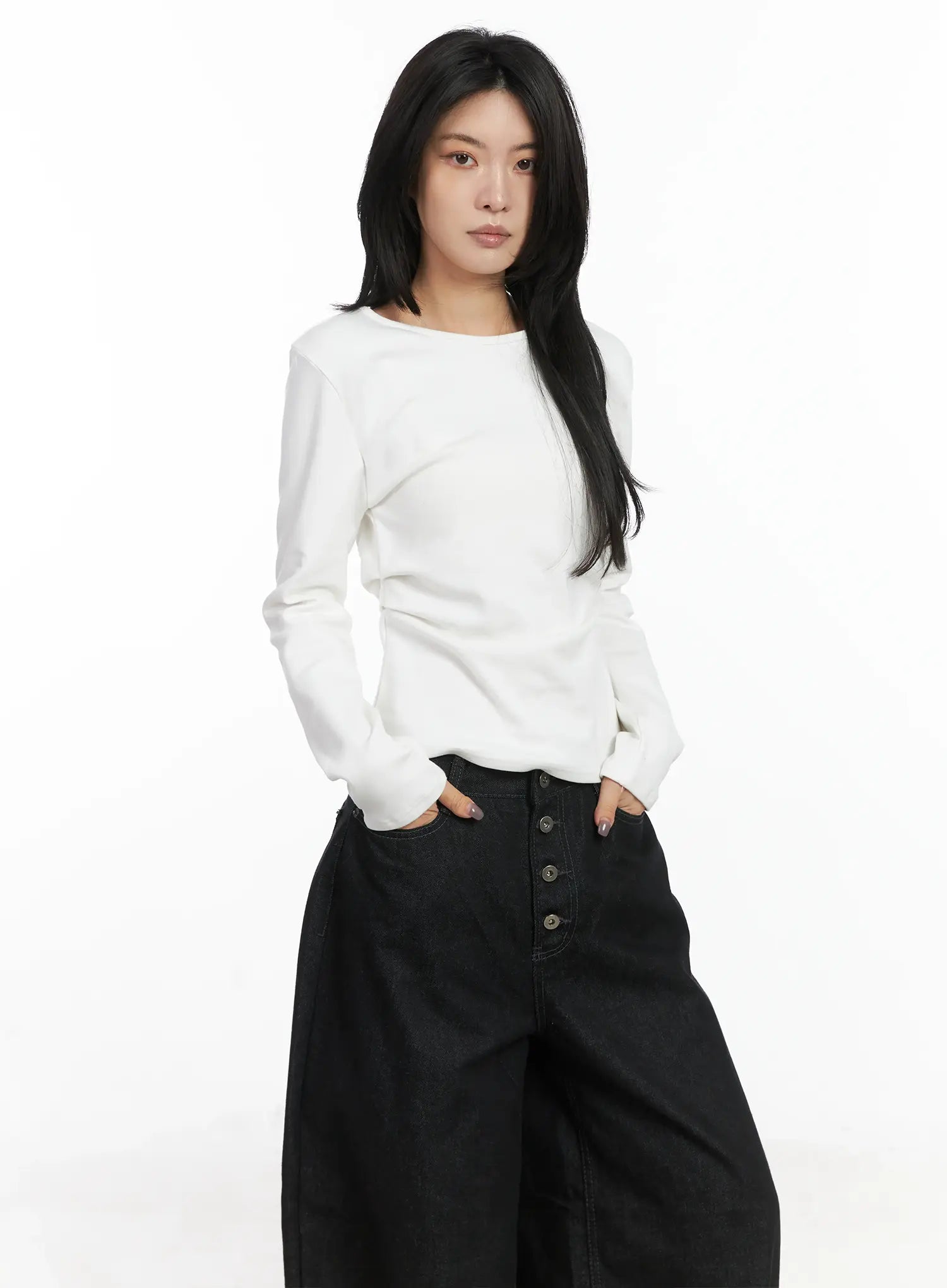 Classic U-Neck Pin-Tuck Long Sleeve Tee CN528