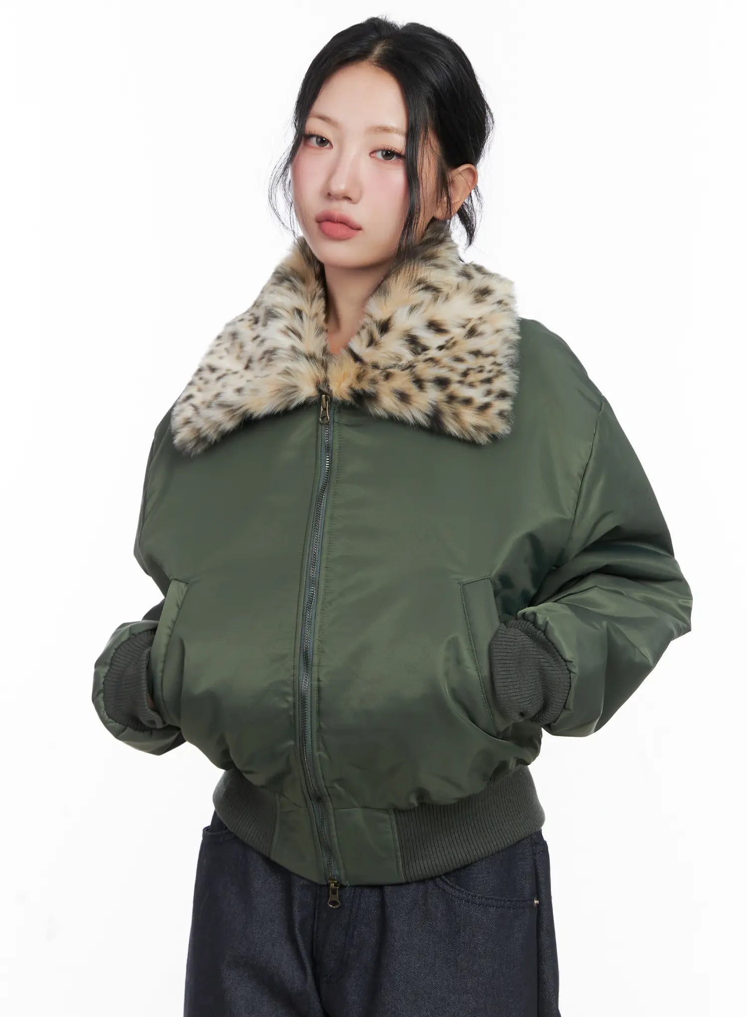 Cozy Faux Fur Collar Bomber Jacket CN514