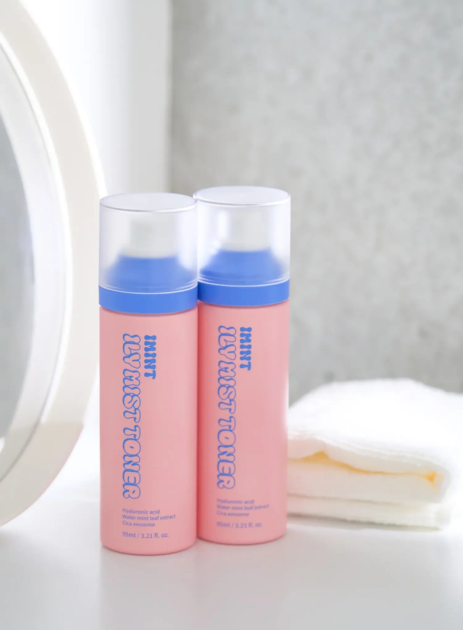 Cica exosome toner mist with water mint, hyaluronic acid and ceramides for soothing hydration.