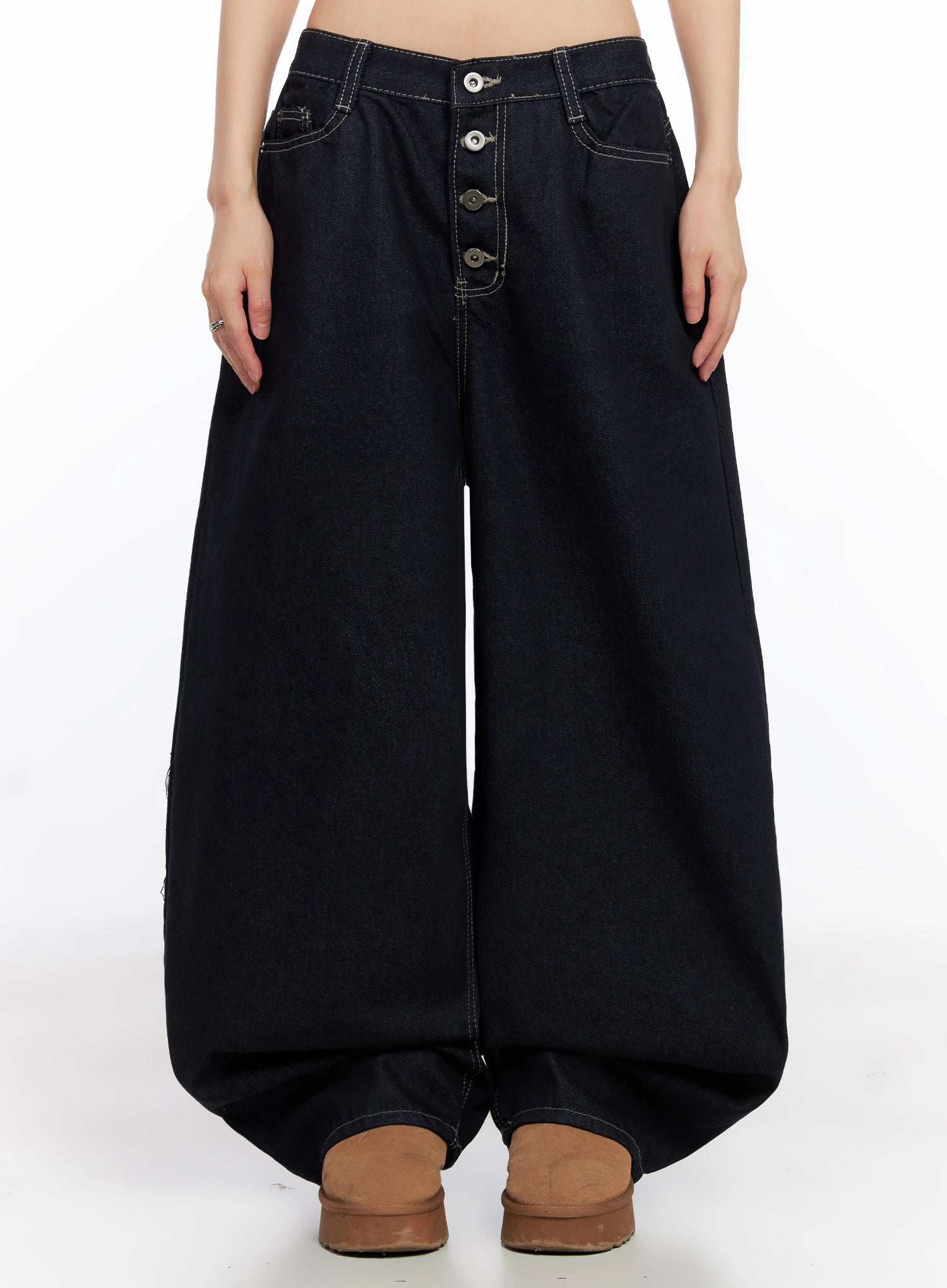 Jazlyn Non-Fade Button Wide Leg Jeans IN503