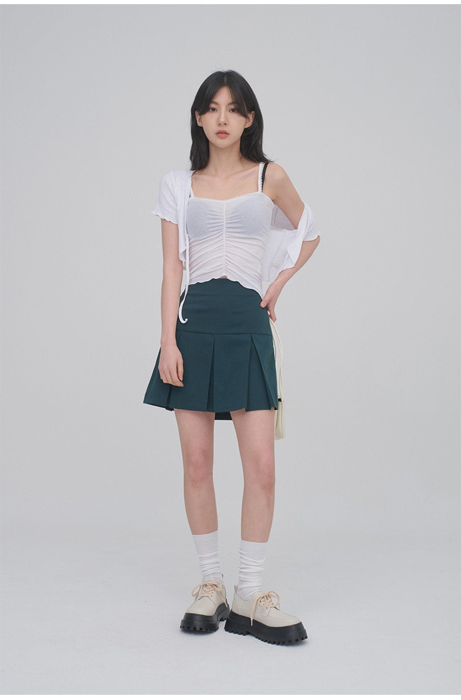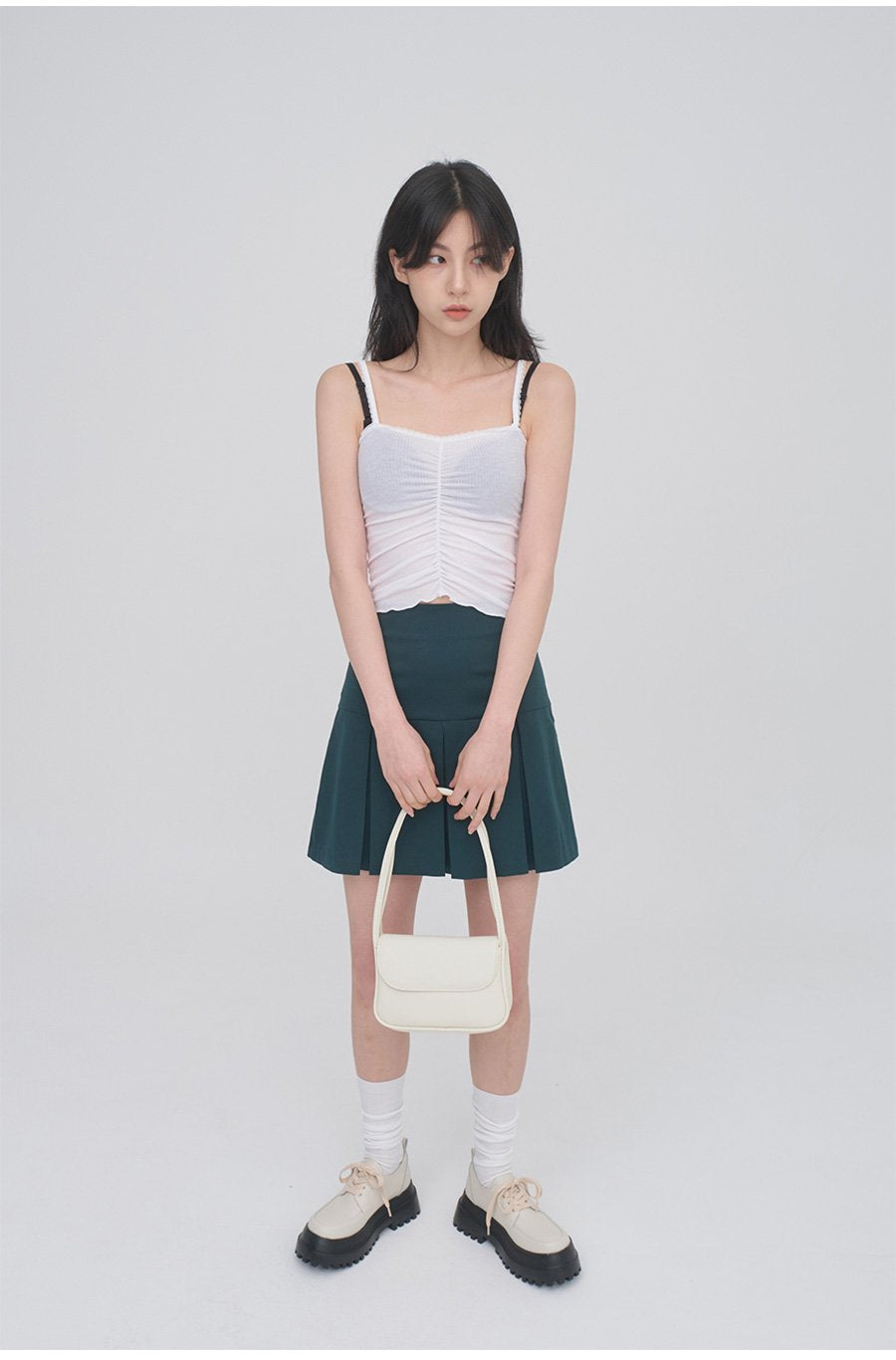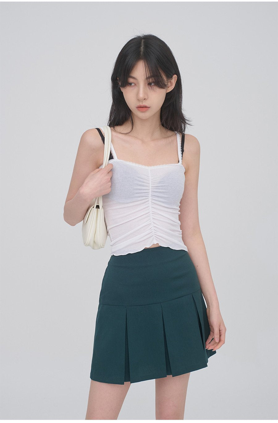 正面抽褶蕾絲吊帶背心無袖上衣 CM3