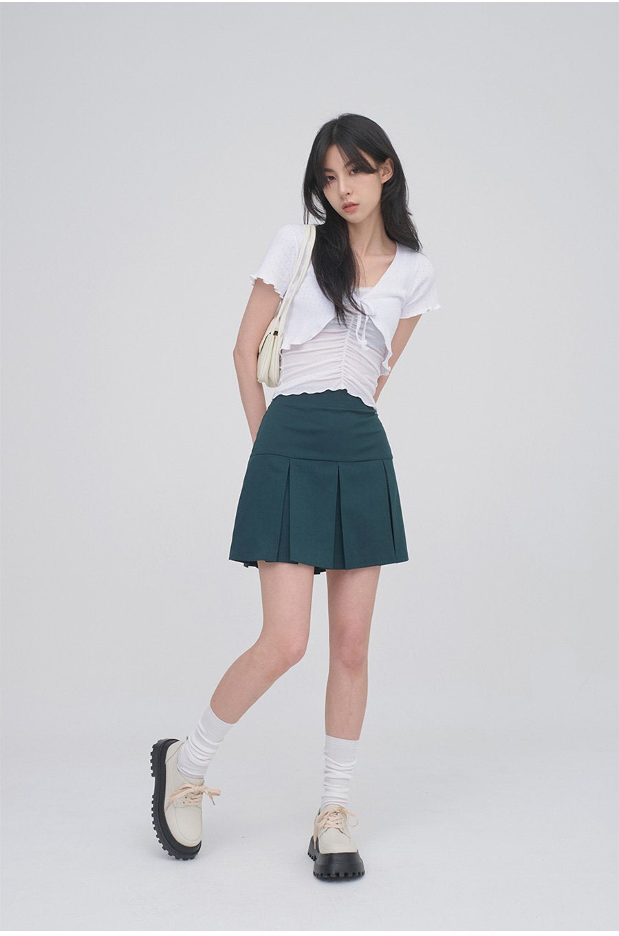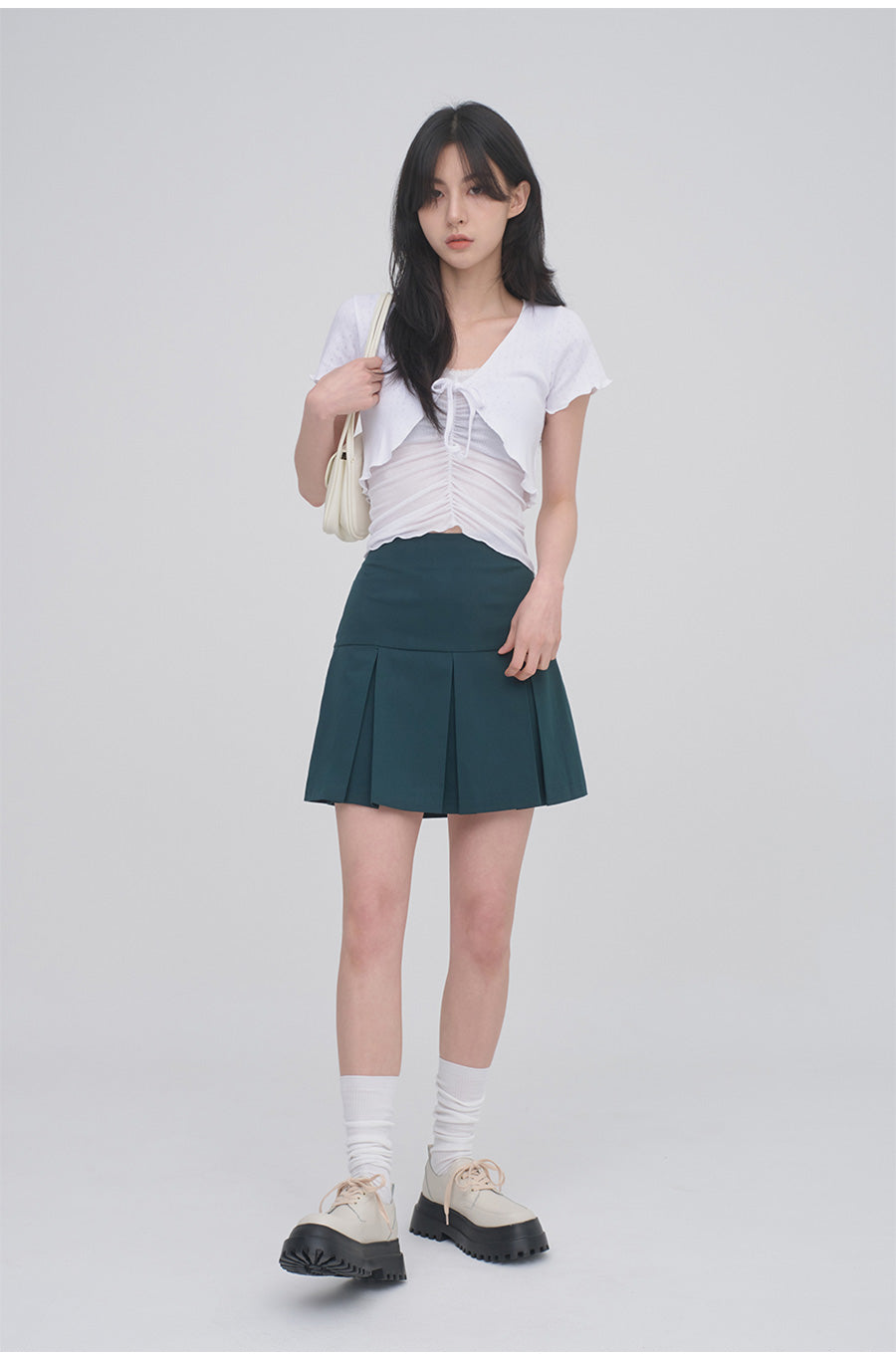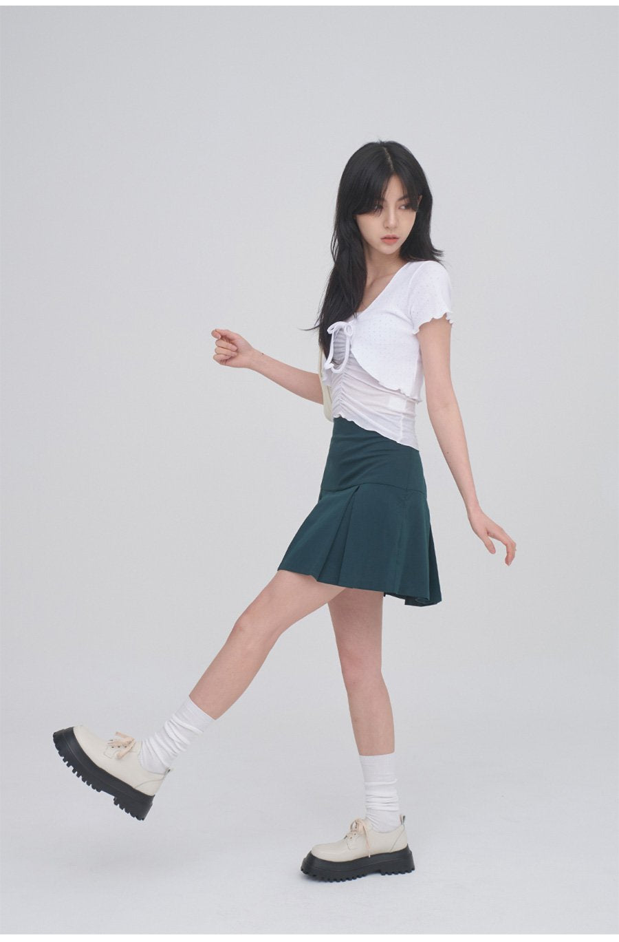 正面抽褶蕾絲吊帶背心無袖上衣 CM3