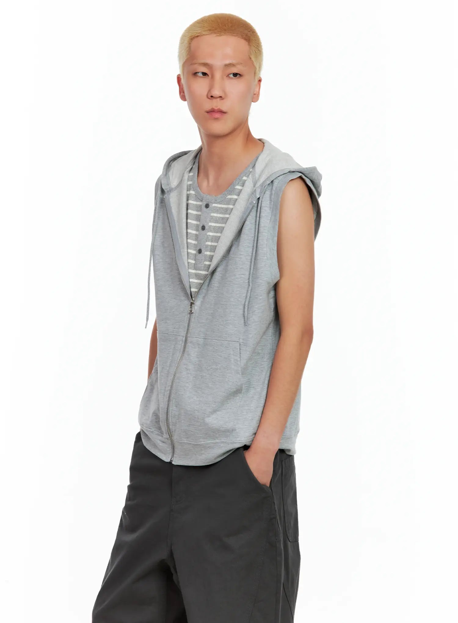 Men's Cotton Zip-Up Hoodie Vest IL511