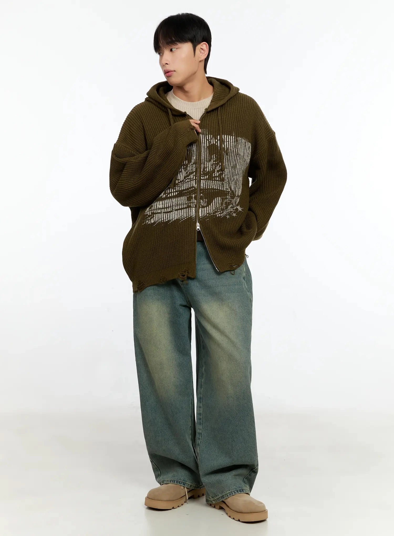 Men's Laser-Printed Knit Hooded Zip-Up IN525