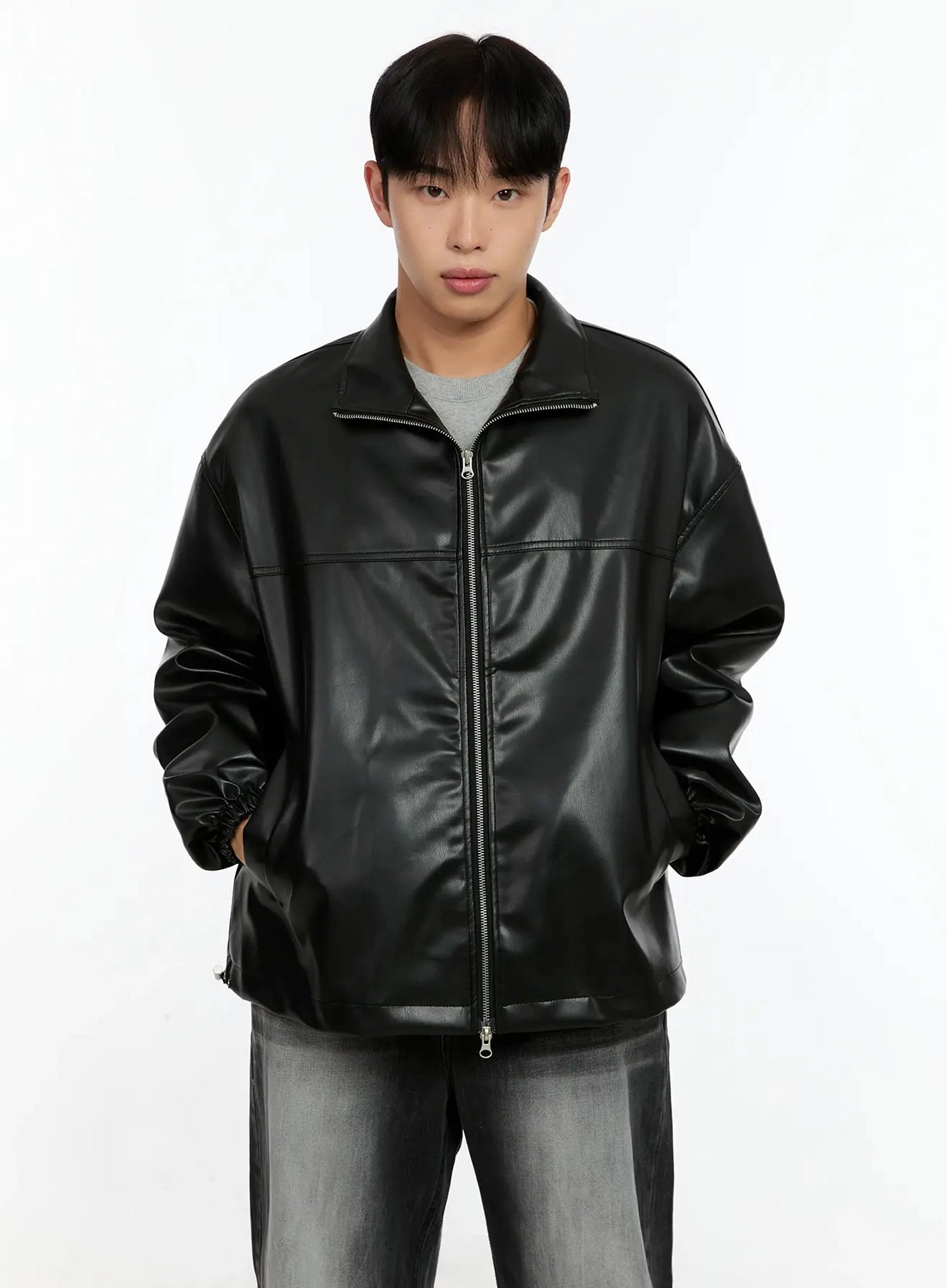 Men's Oversized Faux Leather Jacket IN506