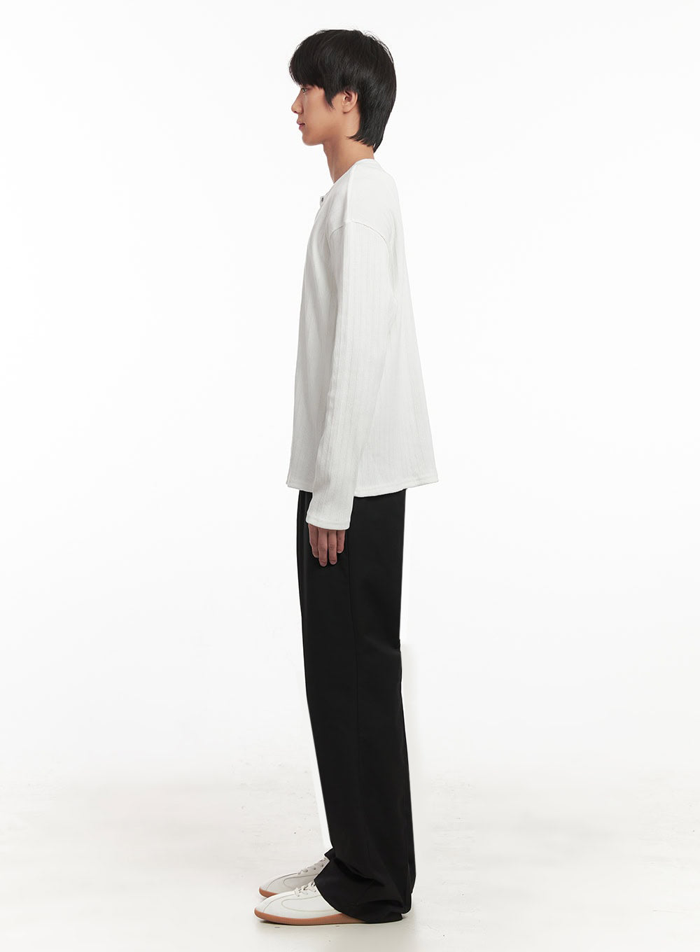 Men's Ribbed Buttoned Long-Sleeve Shirt IA511