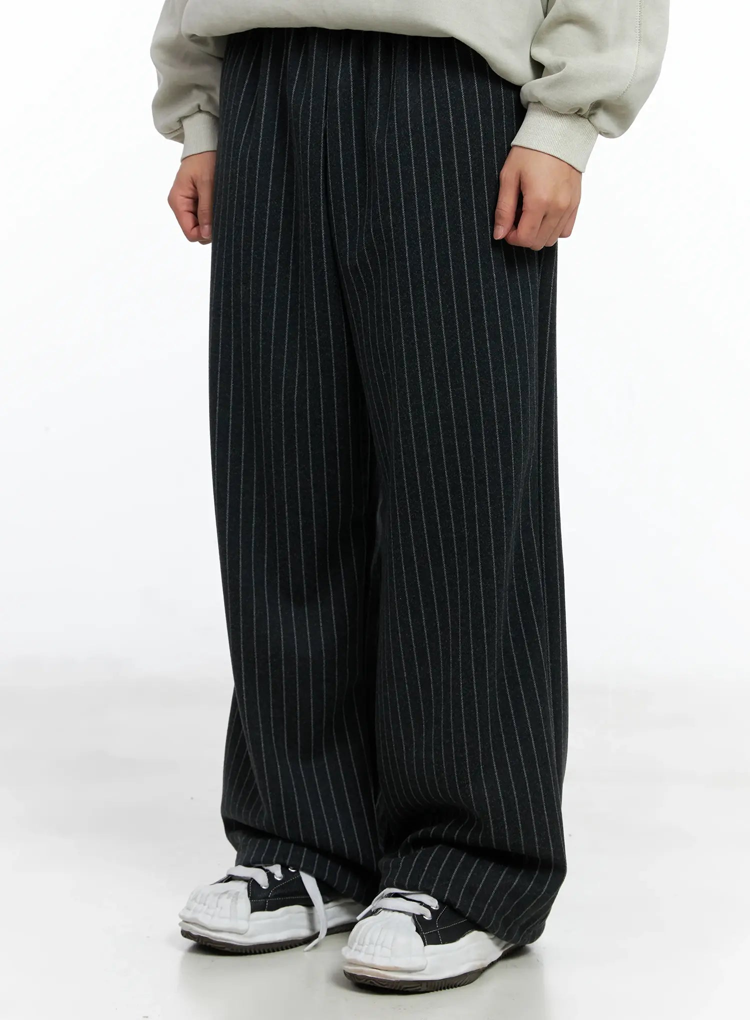 Men's Stripe Wide Leg Pants (Black) IN518