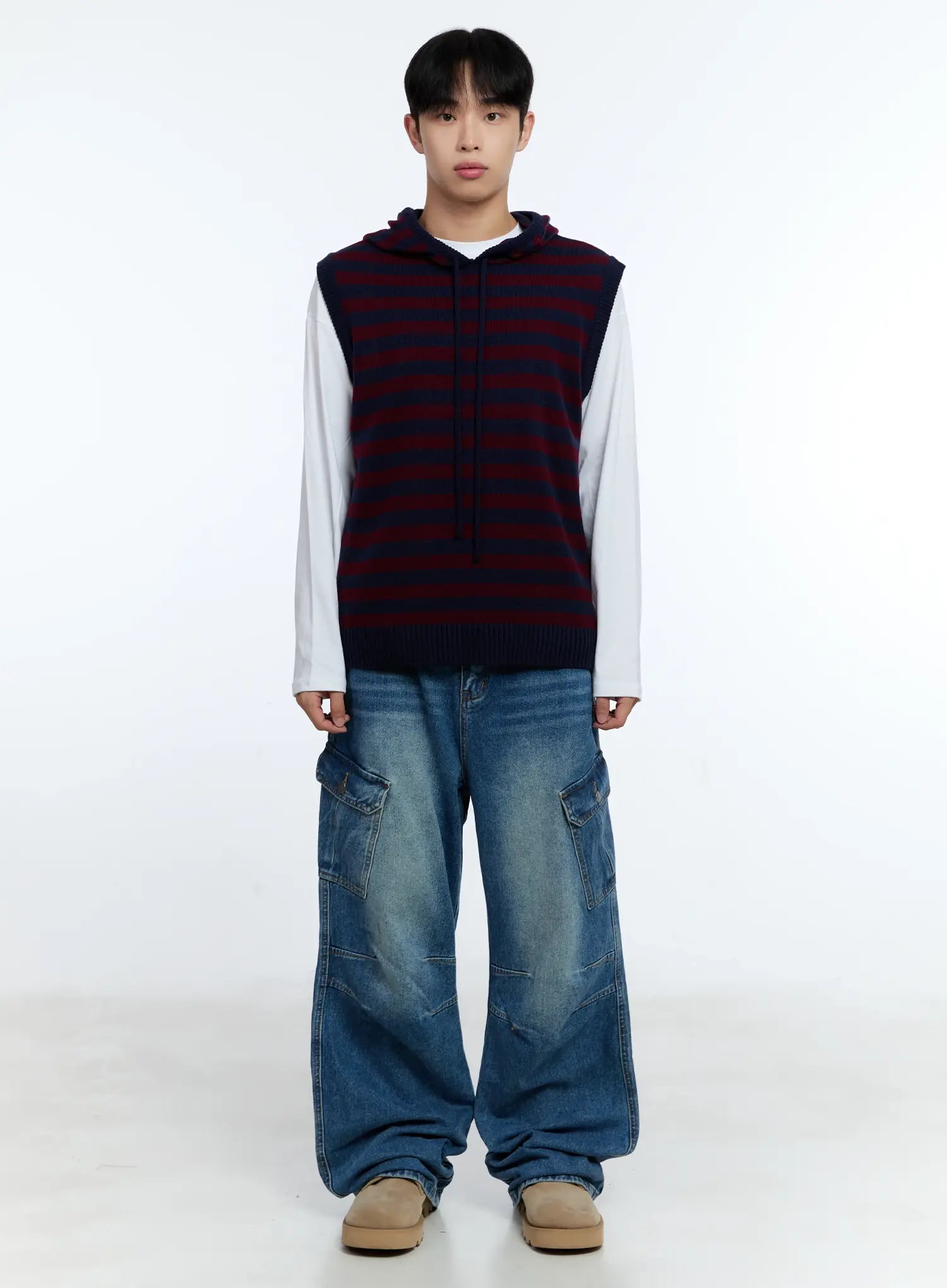 Men's Striped Knit Sleeveless Hoodie IG515