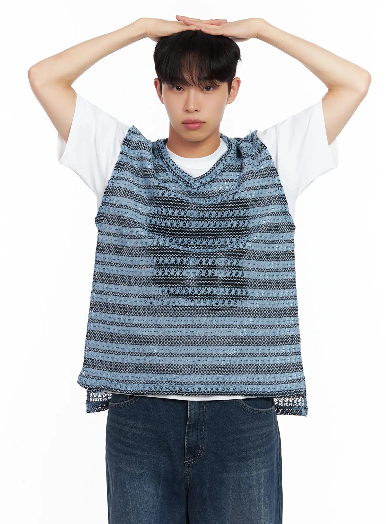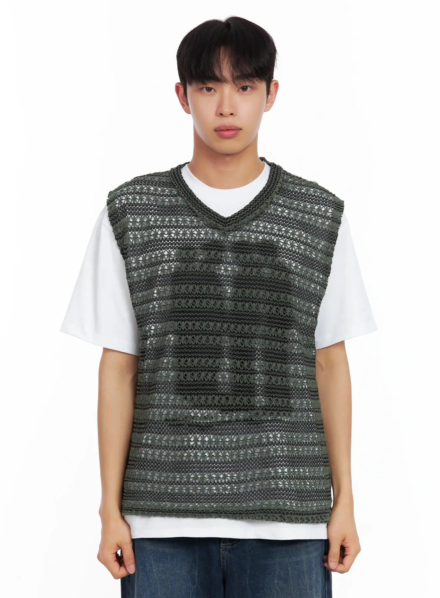 Men's Striped Knit V-Neck Vest IL516