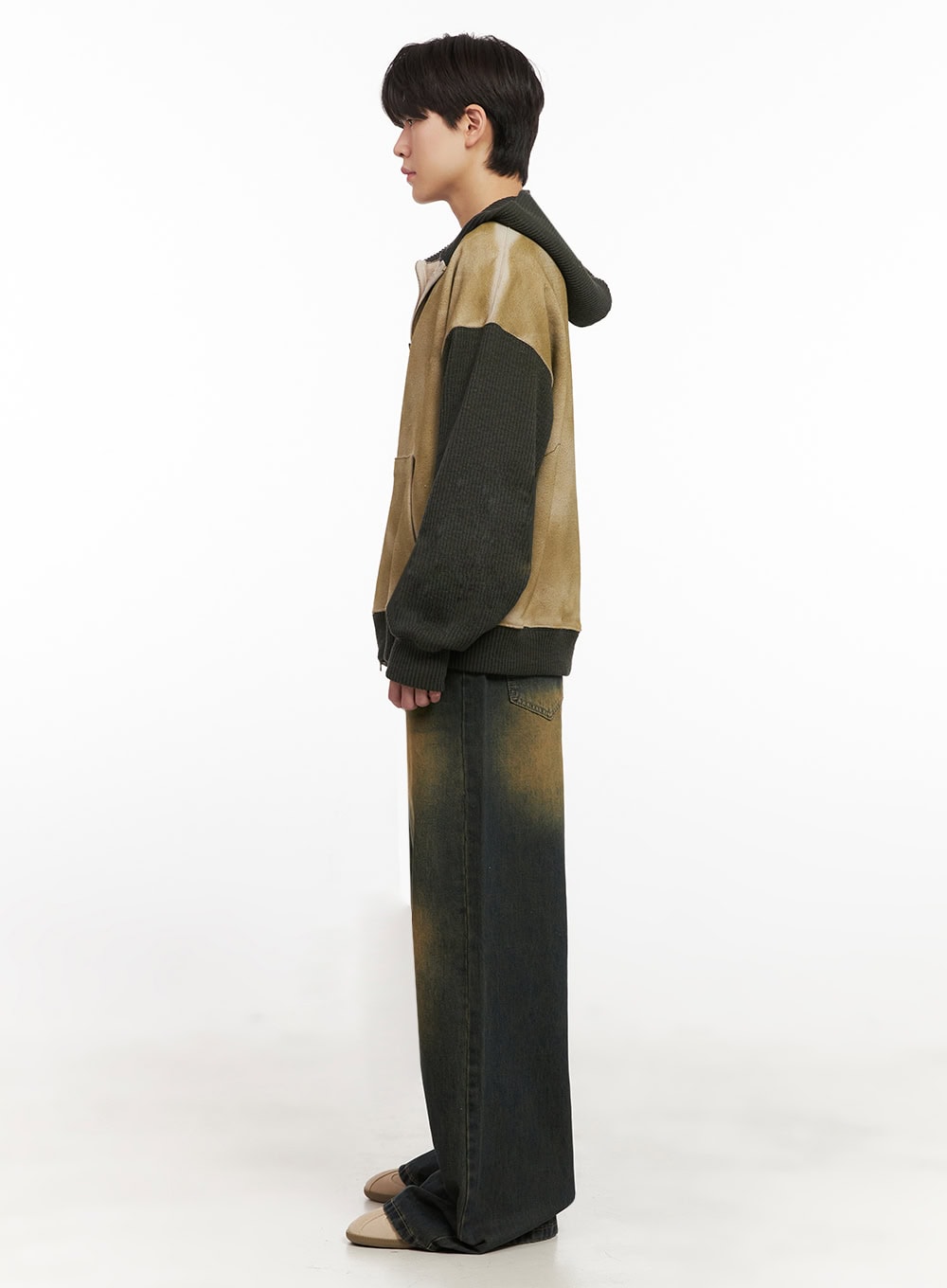 Men's Two-Tone Fleece-Lined Zip-Up Hoodie IJ517