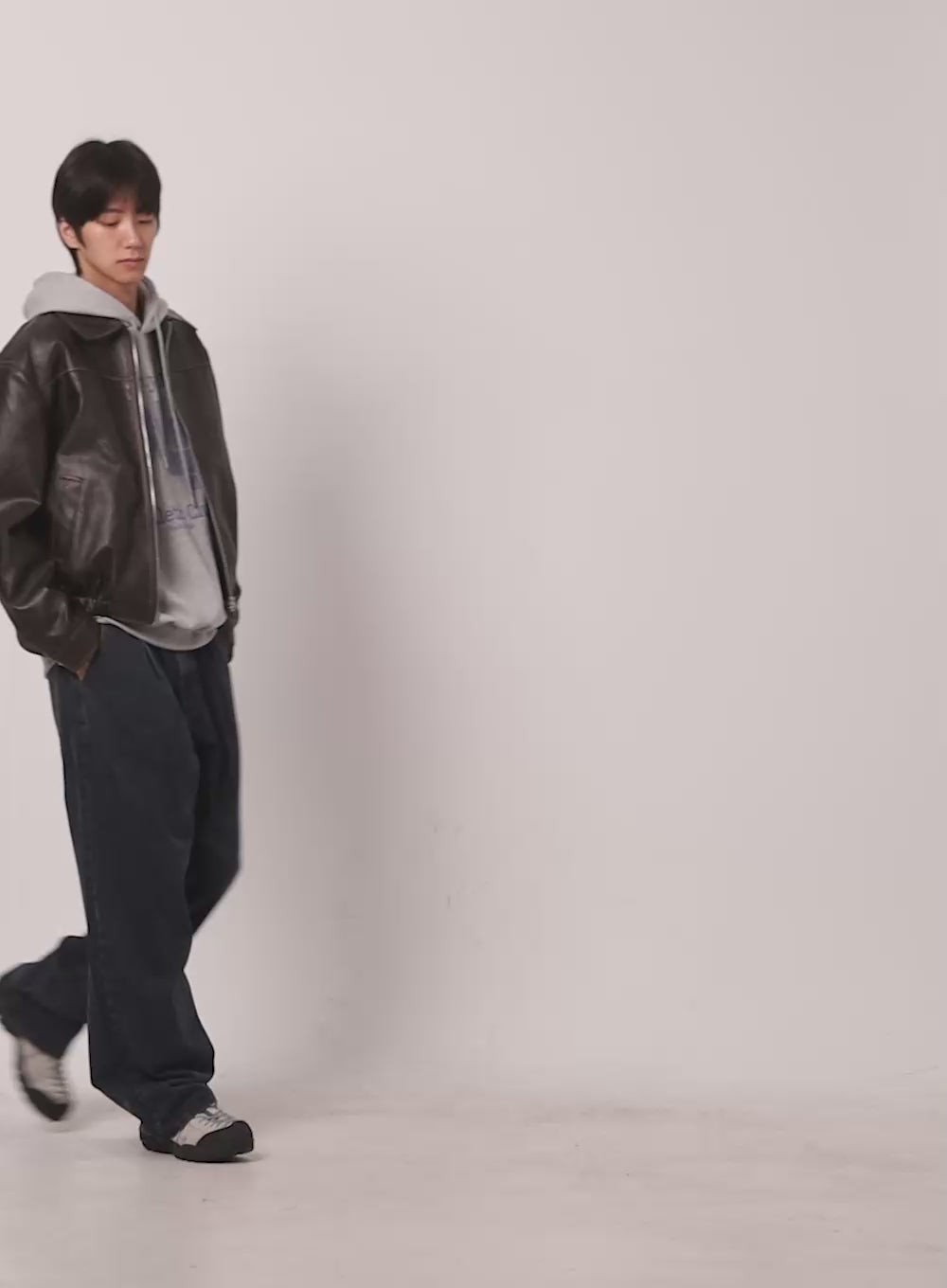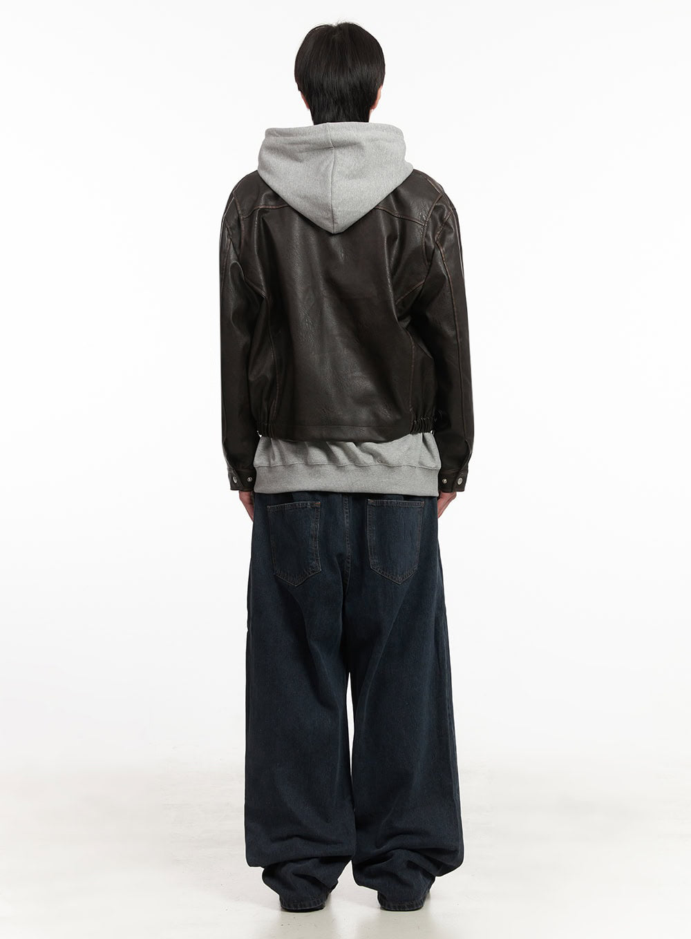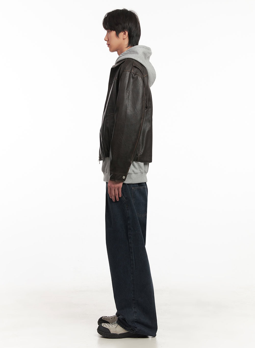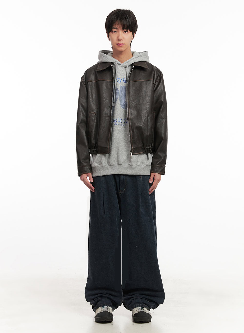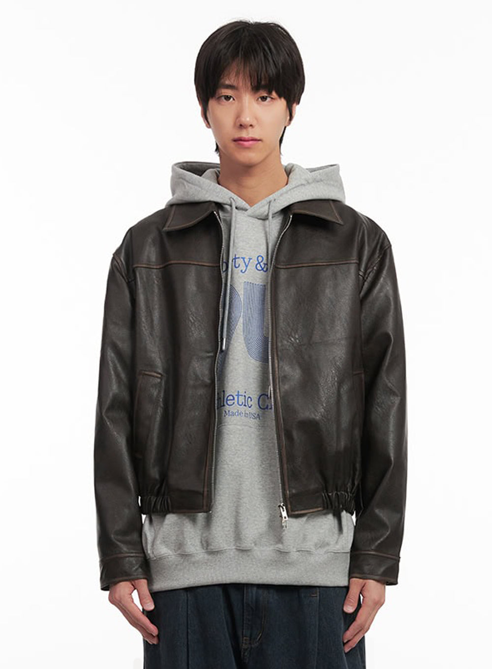 Men's Vintage Faux-Leather Collared Jacket IA510