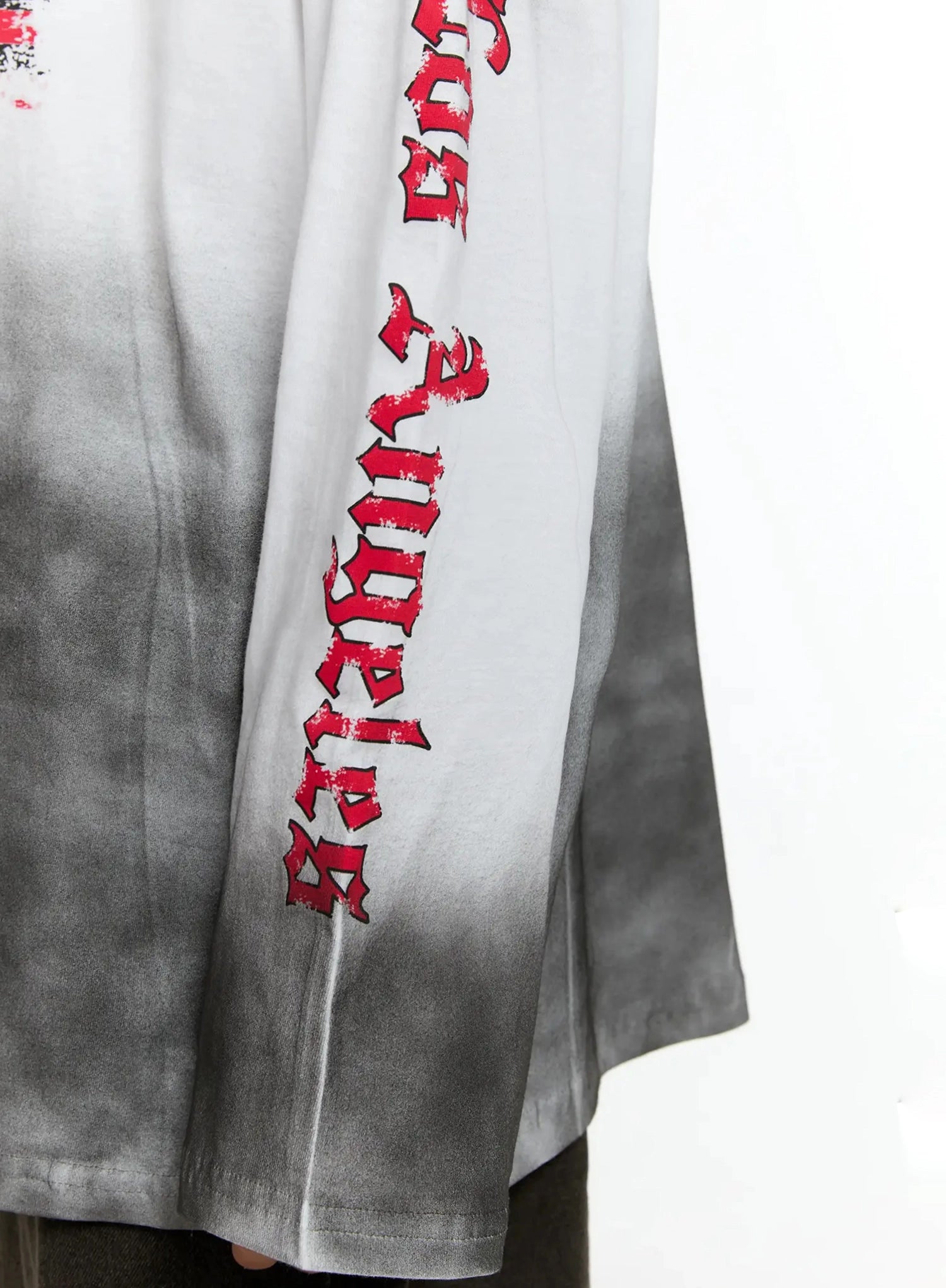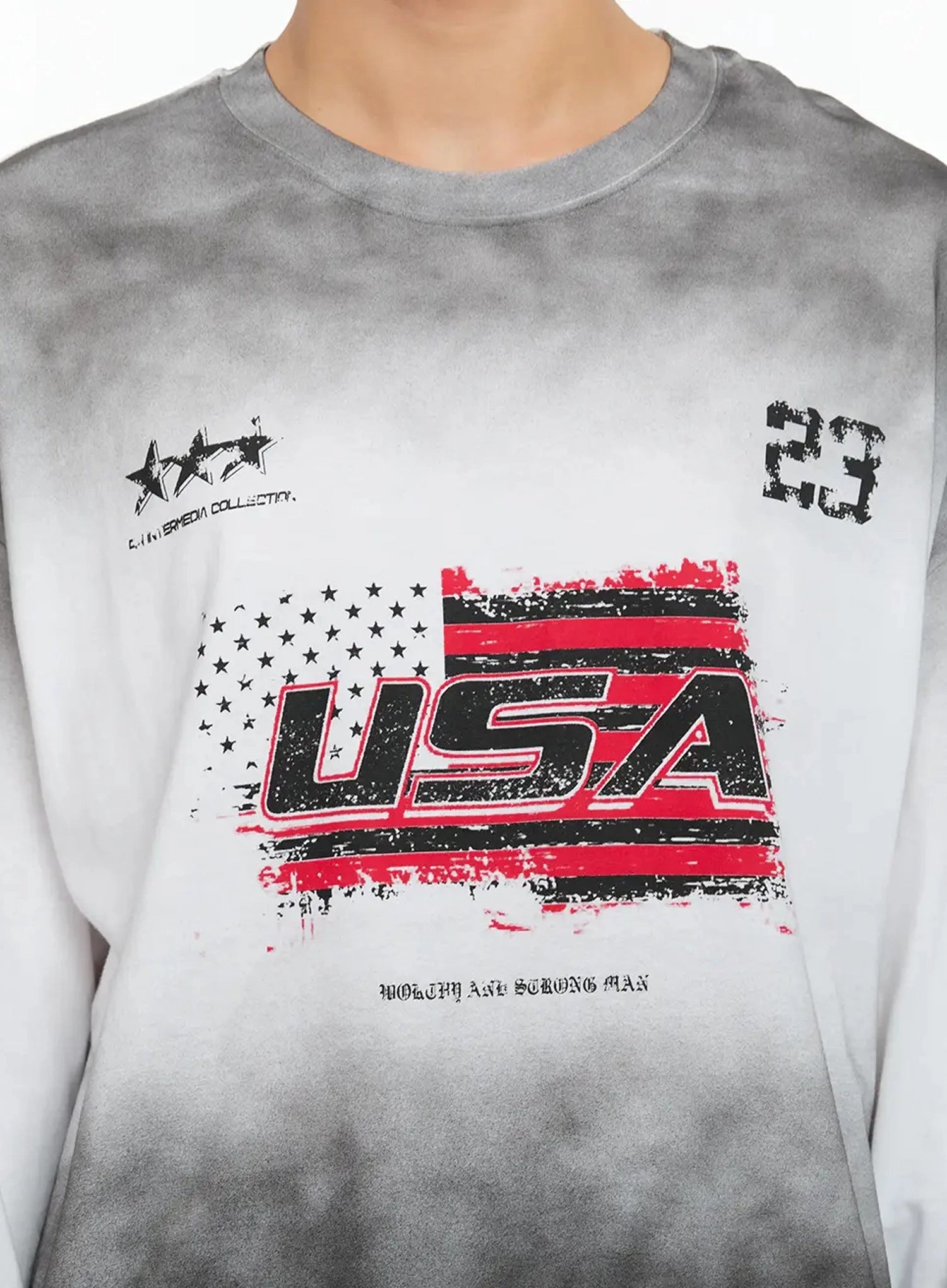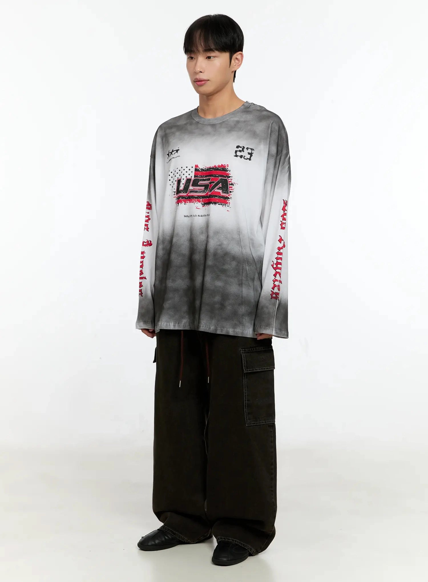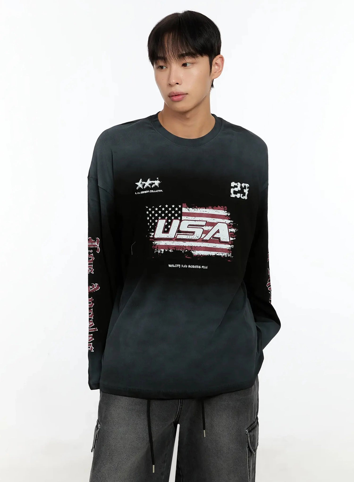 Men's Vintage Graphic Gradient Long Sleeve Tee IN525