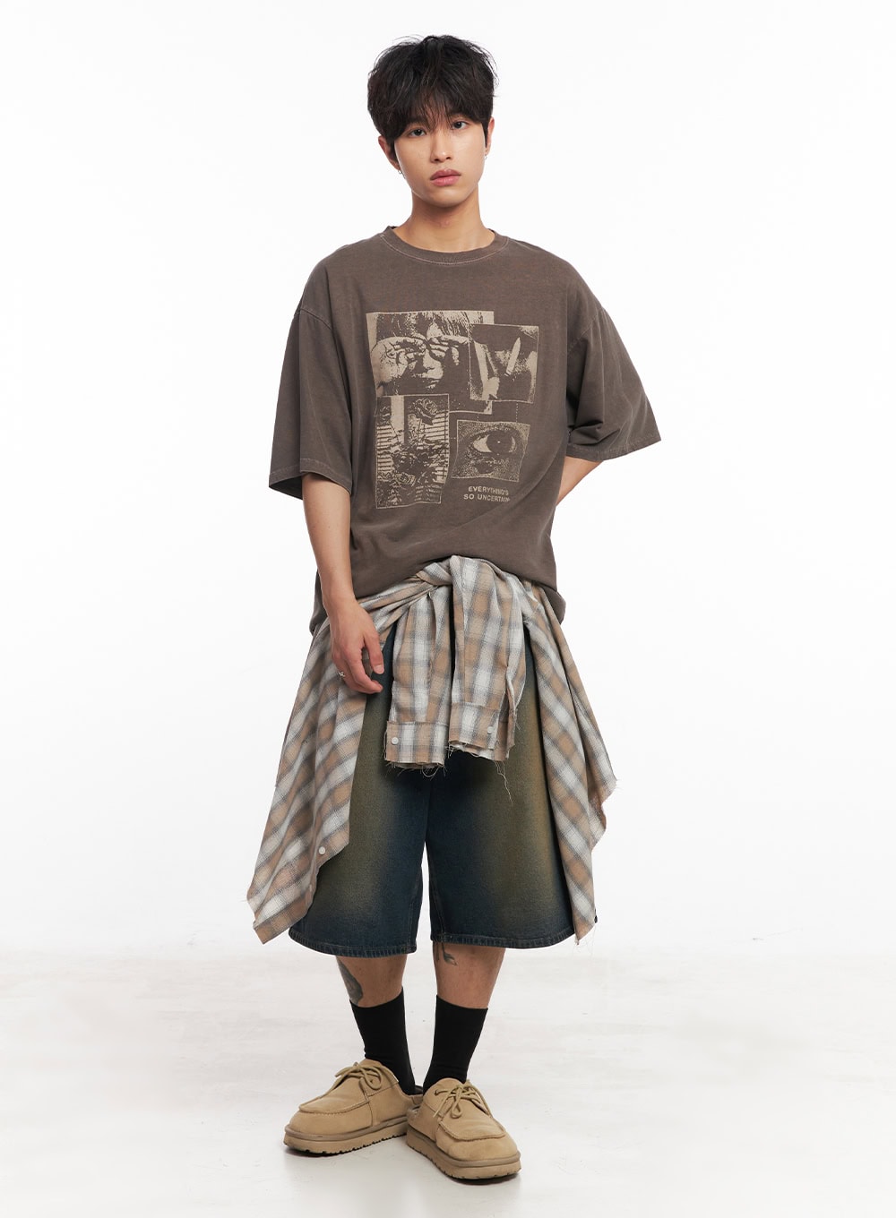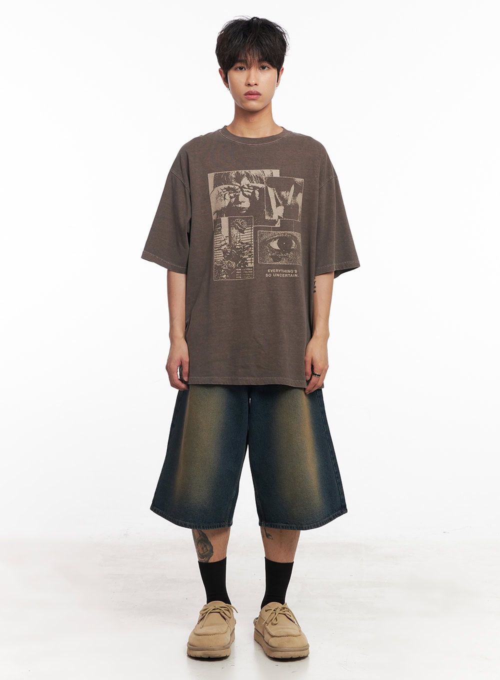 Men's Washed Relaxed-Fit Jorts (Dark blue) IY508