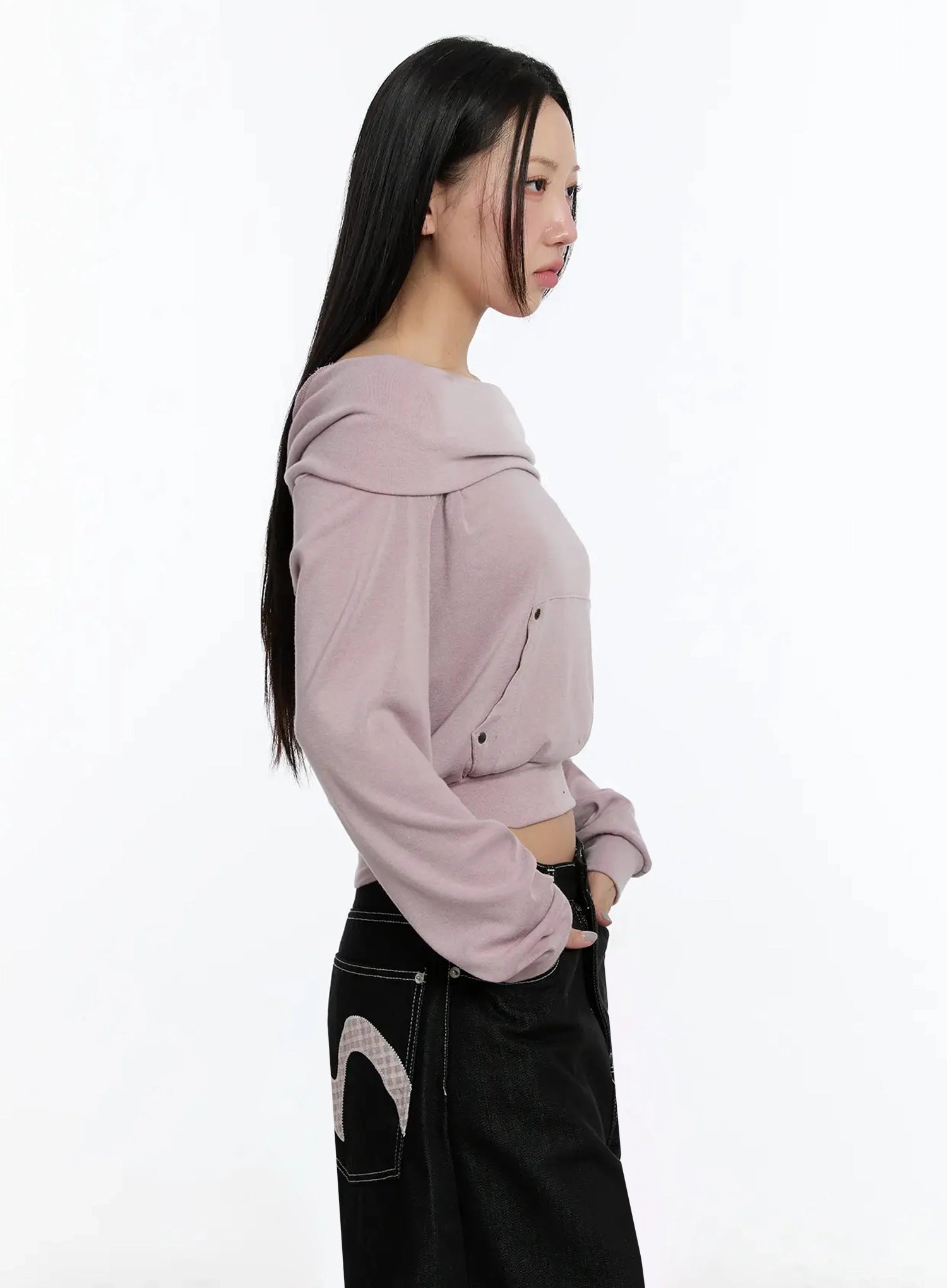 Off-Shoulder Hooded Sweatshirt IM513