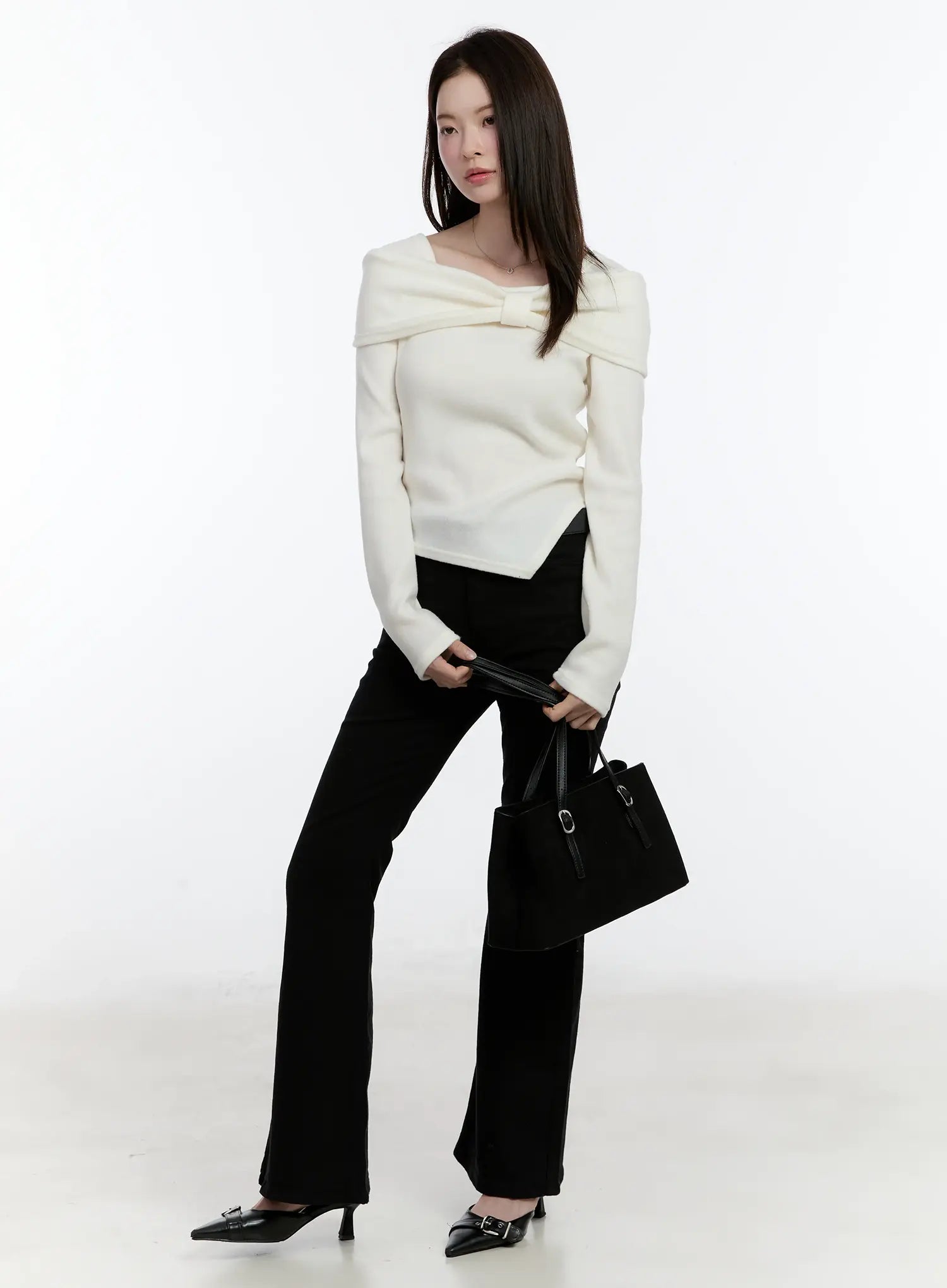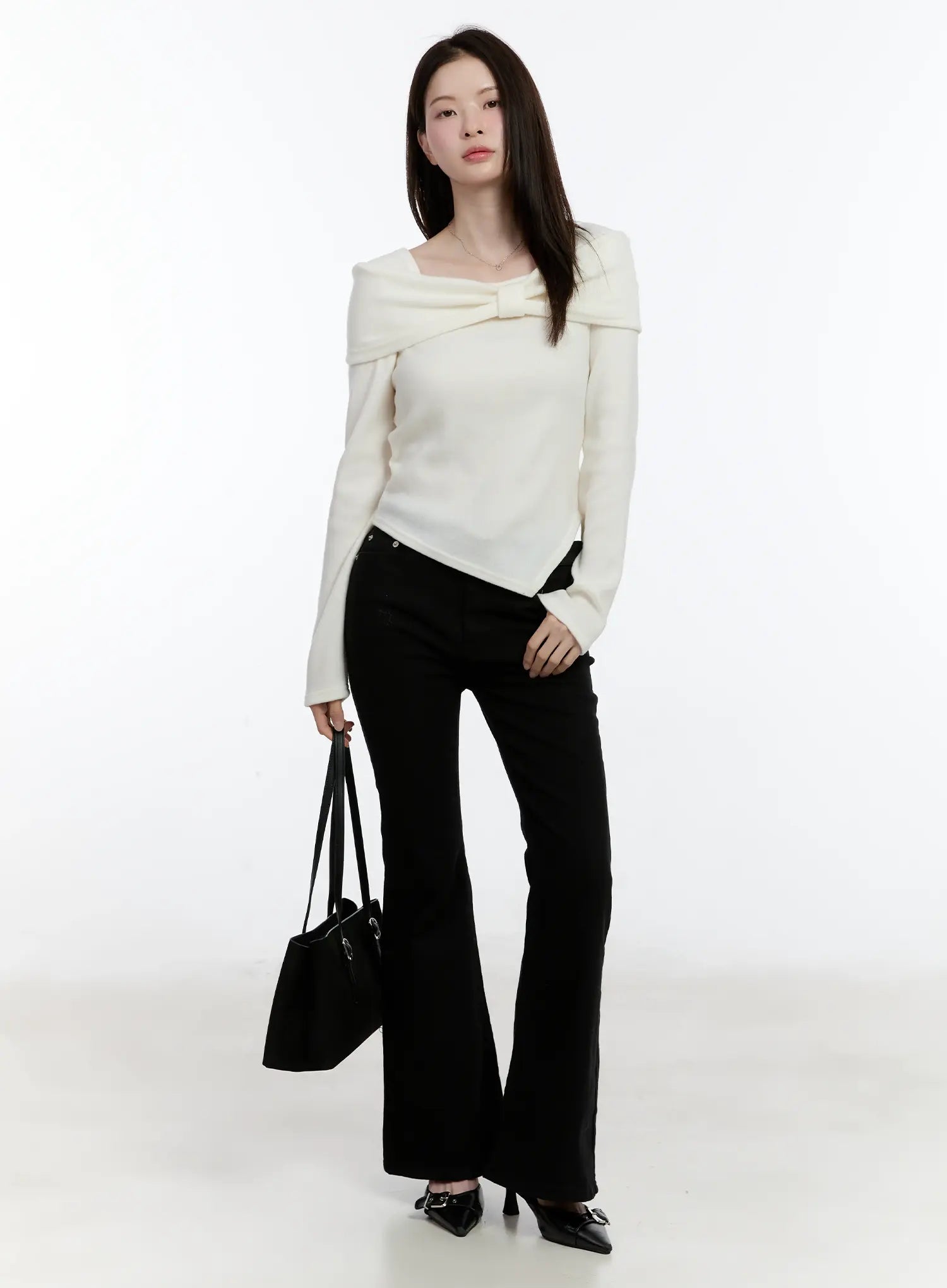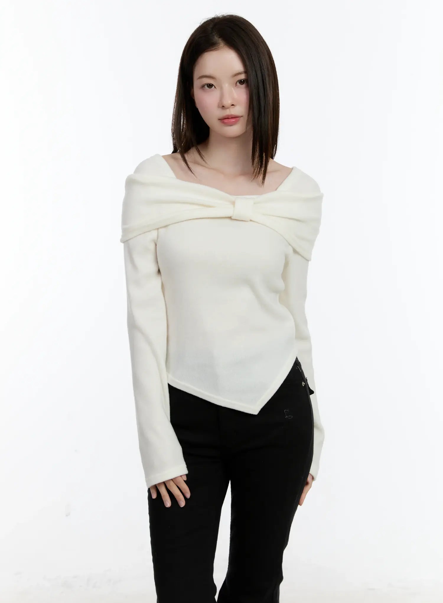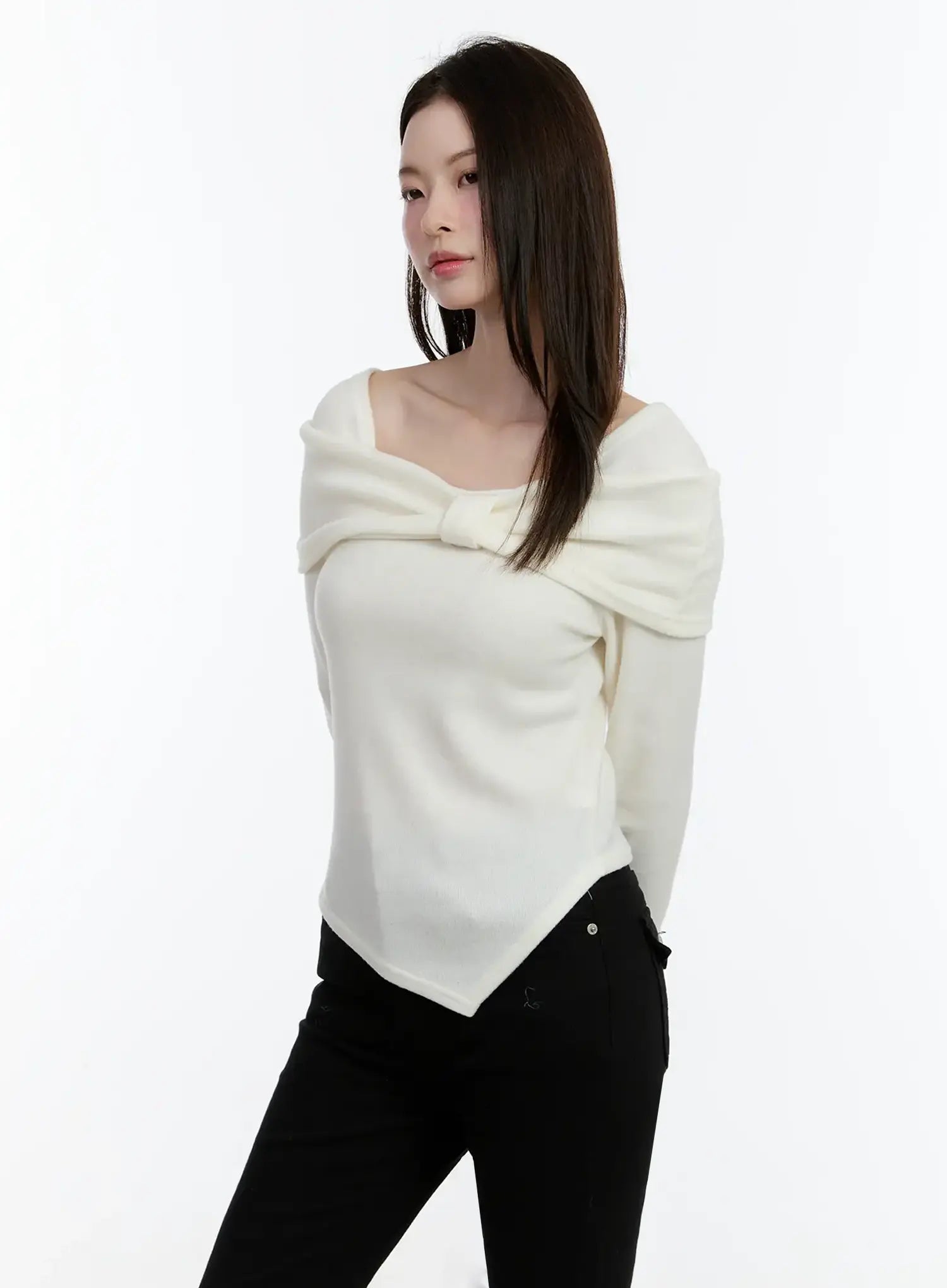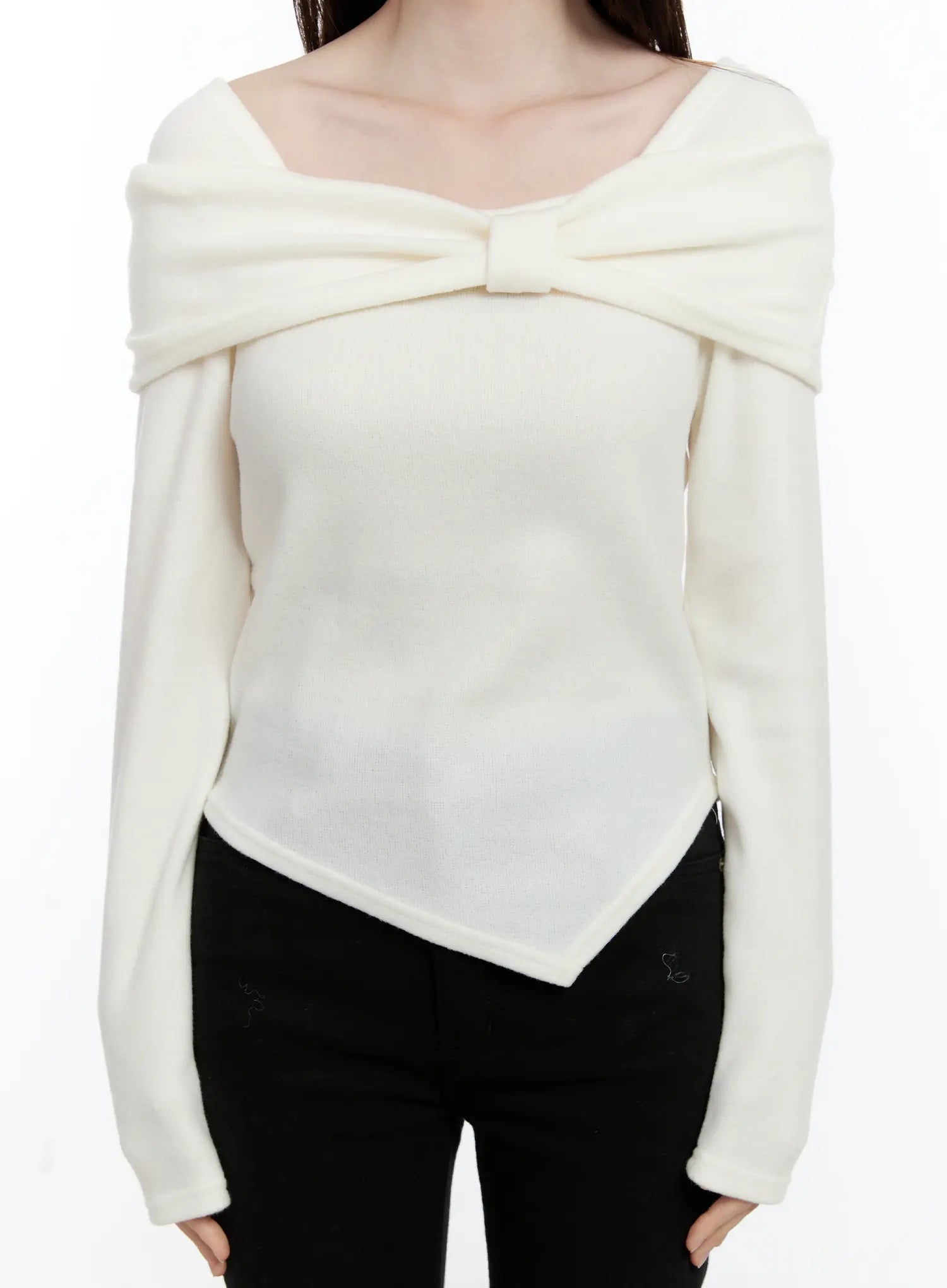 Off-Shoulder Knit Ribbon Top ID510