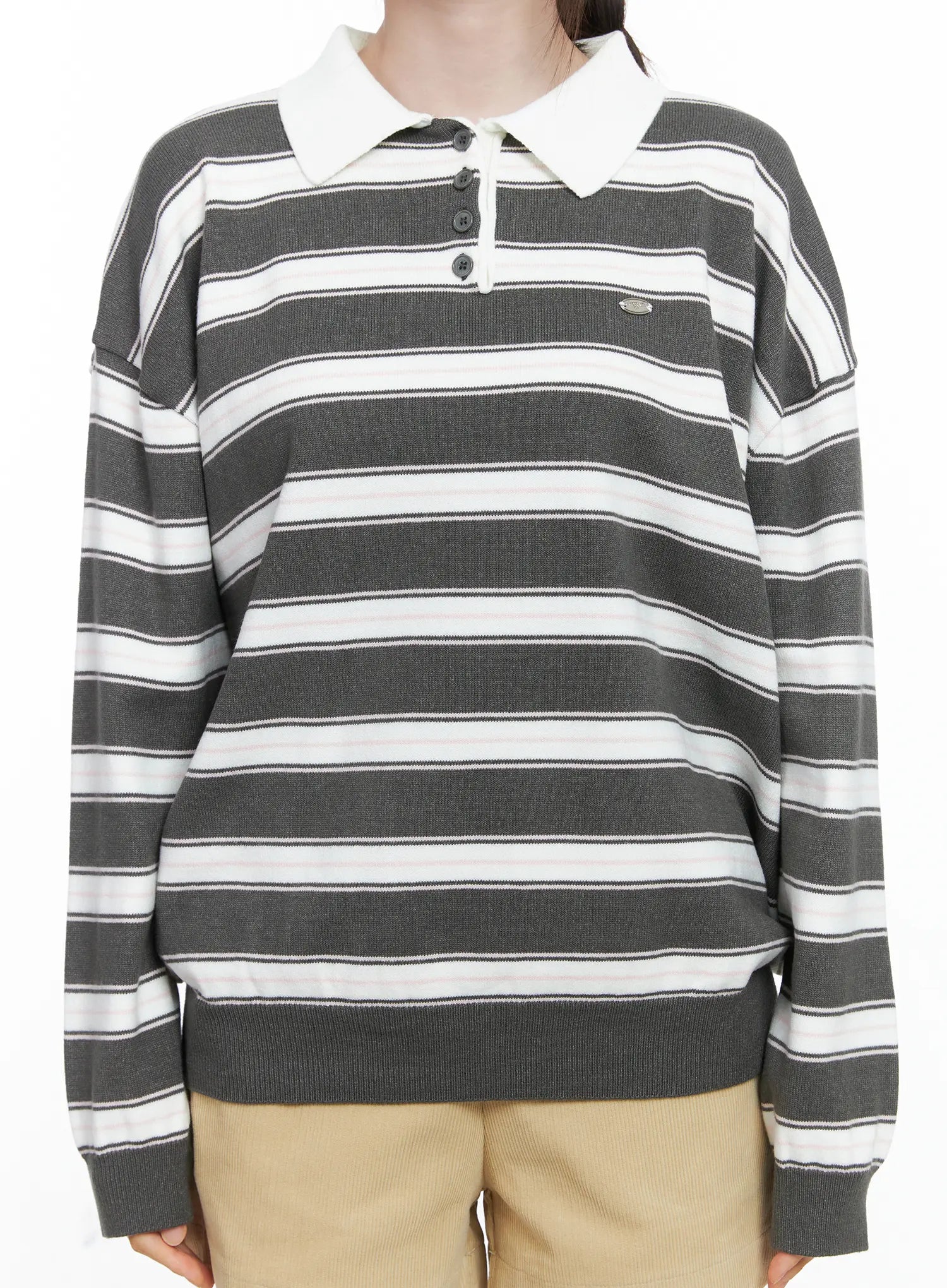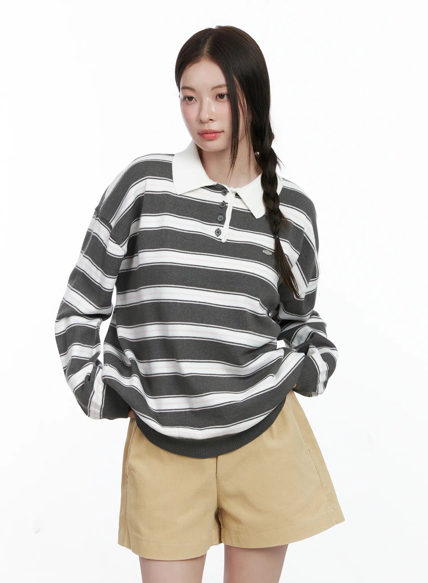 Oversized Striped Long Sleeve Collared Shirt CO503