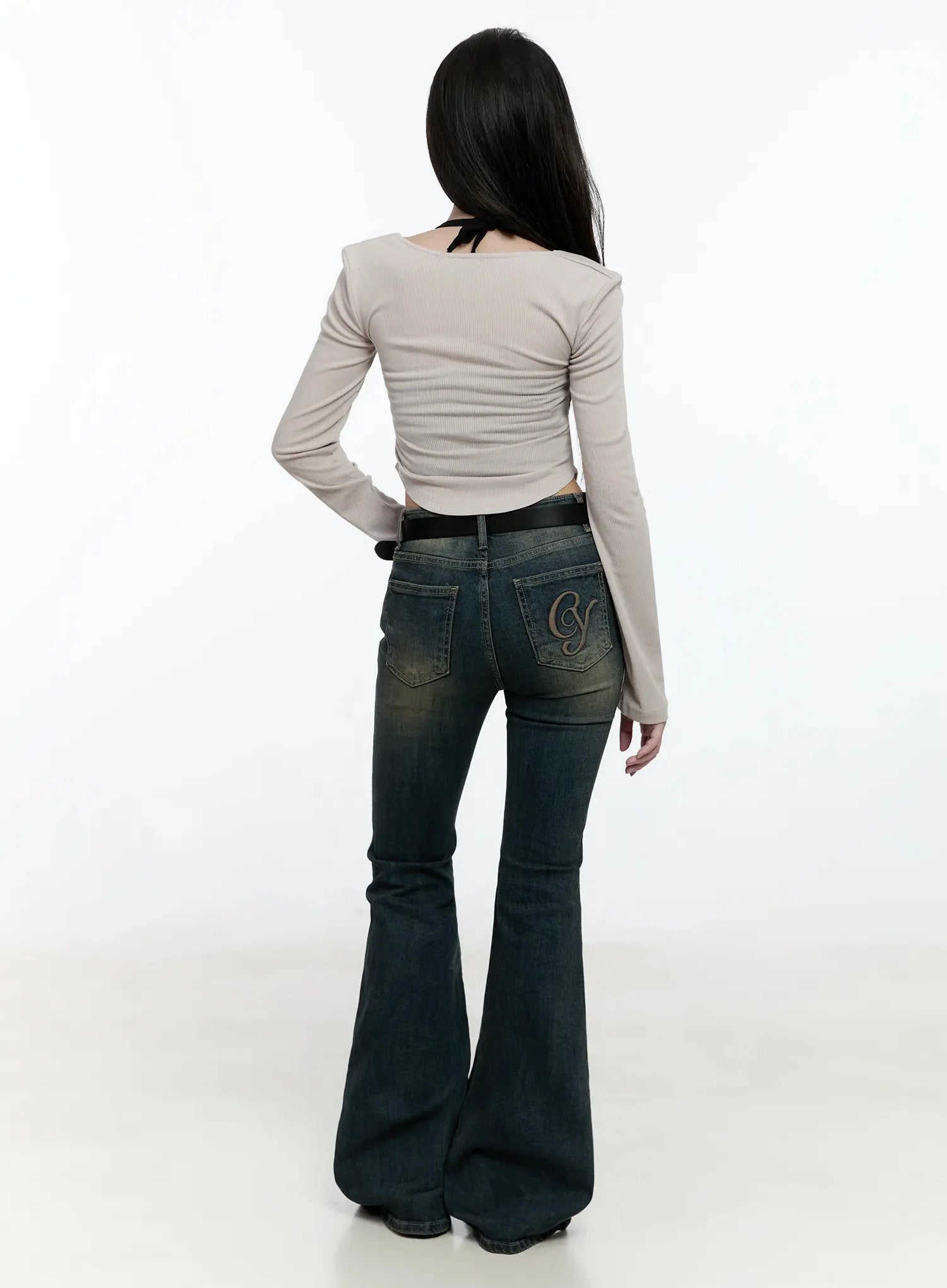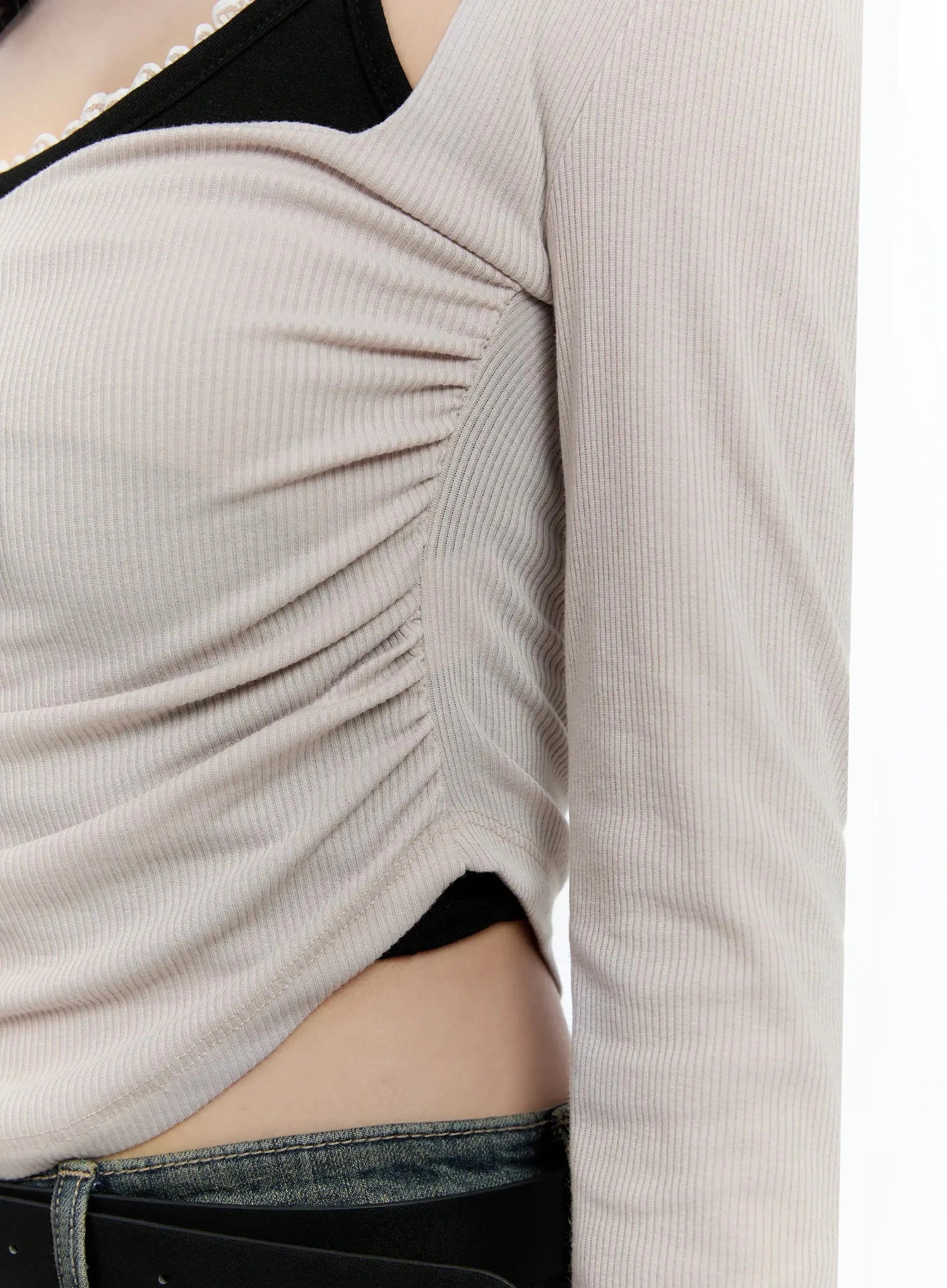 Ribbed Halterneck Shirred Long Sleeve Top IO520