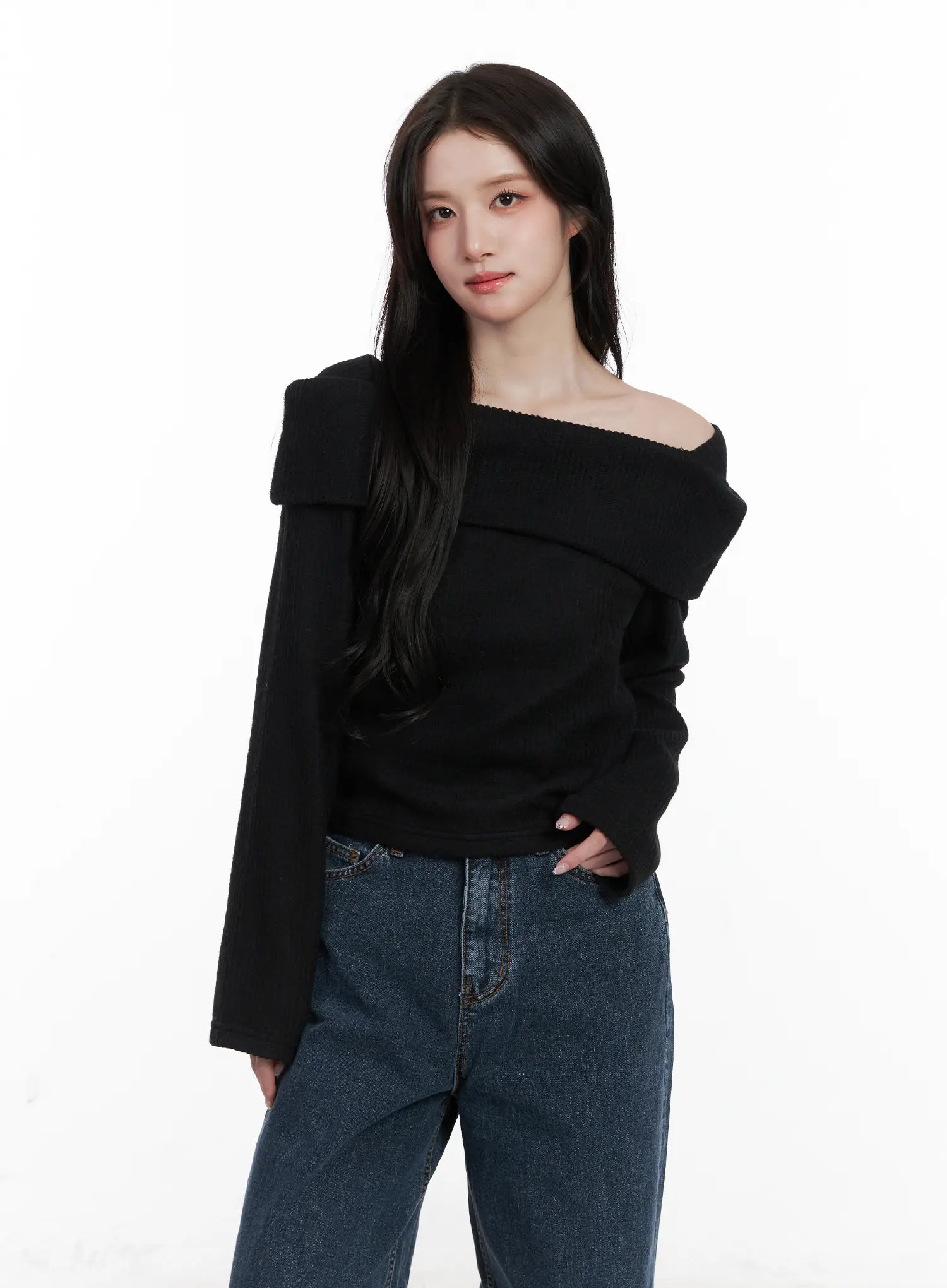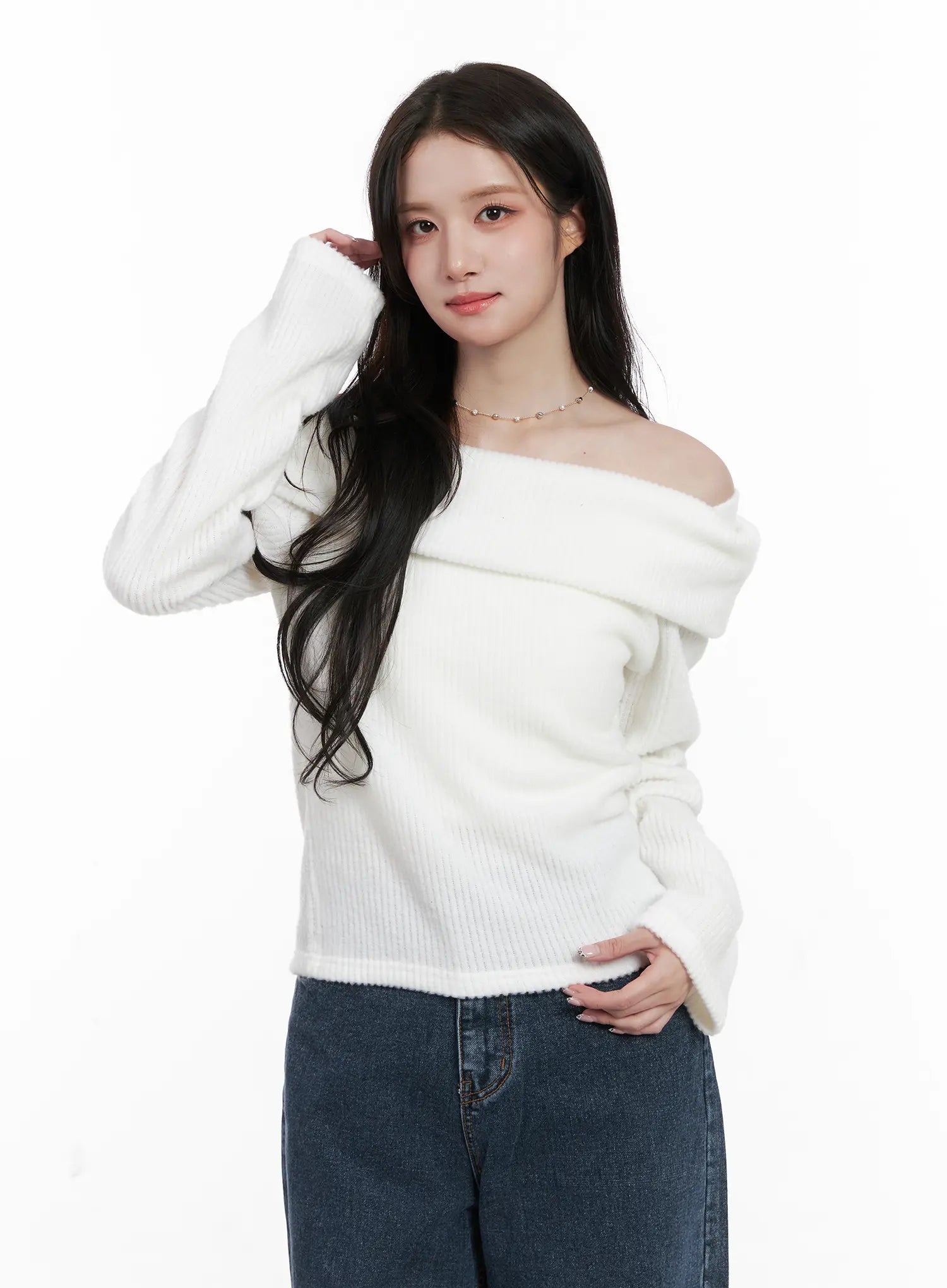 Ribbed Off-Shoulder Long Sleeve Top CN527